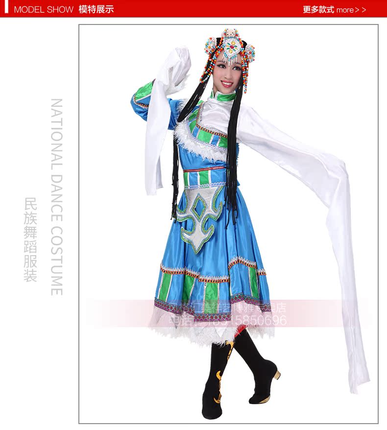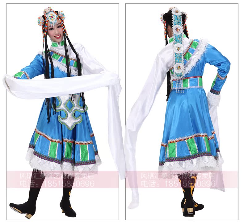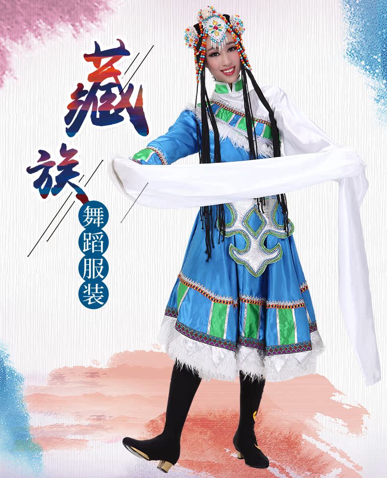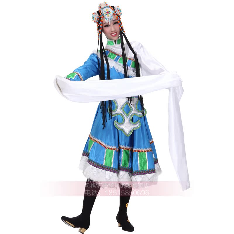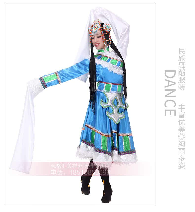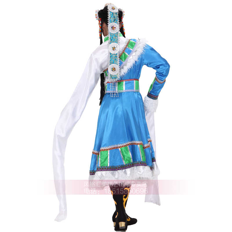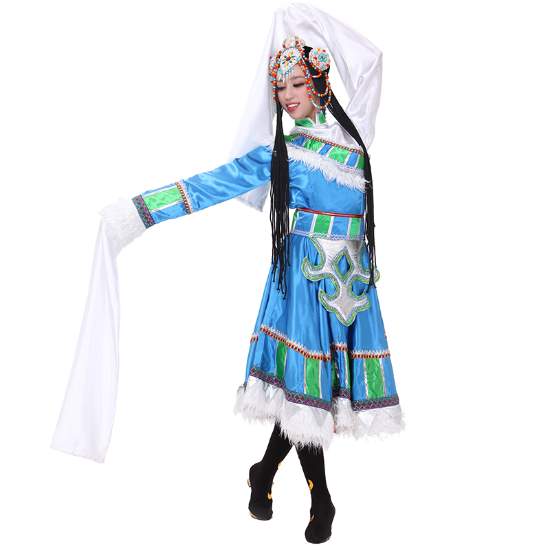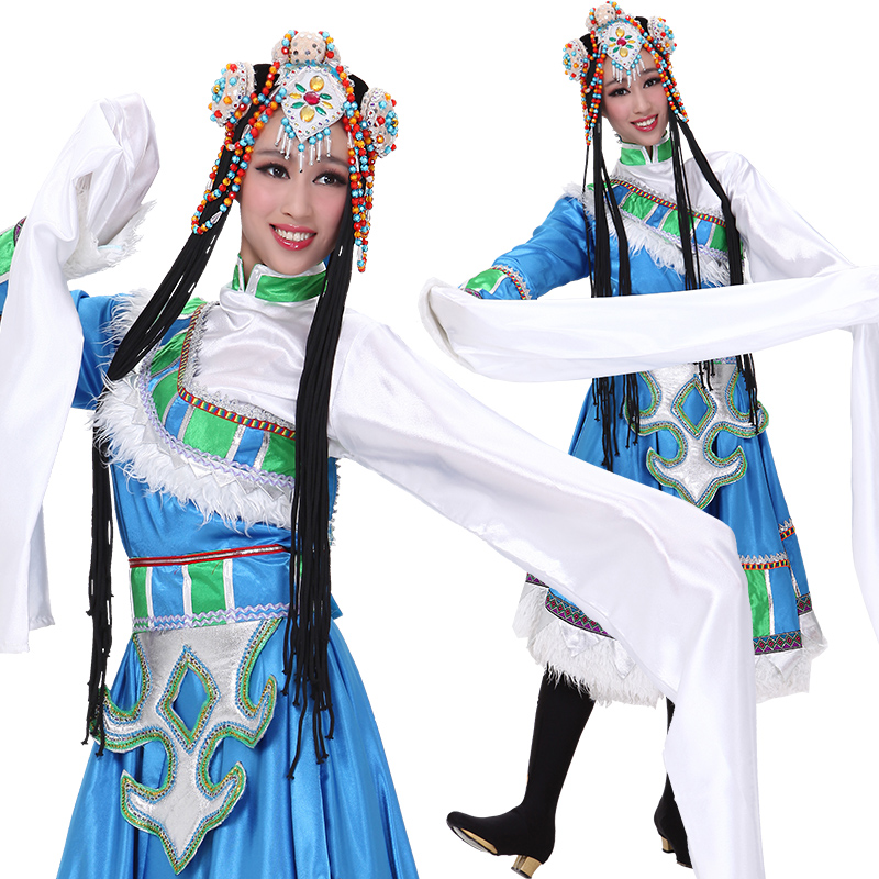 Новая тибетская национальная одежда женщина Новая голубая танцевальная одежда водяные рукава для исполнения одежды