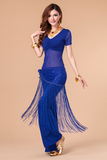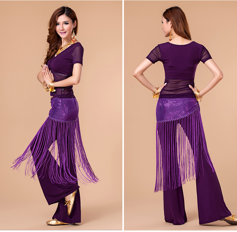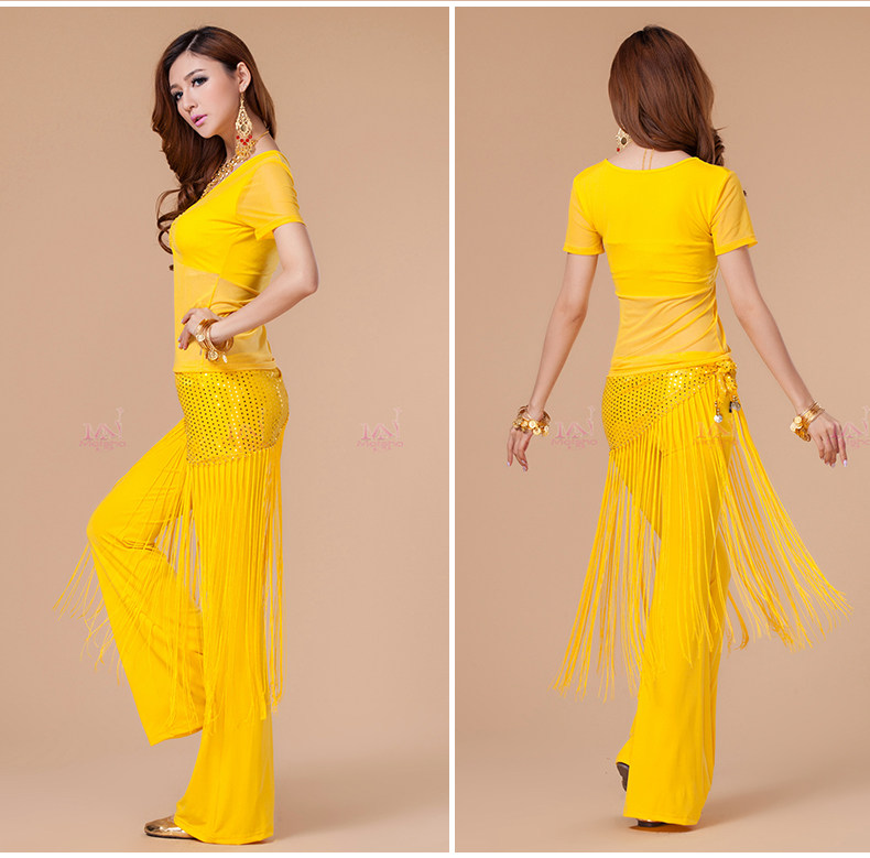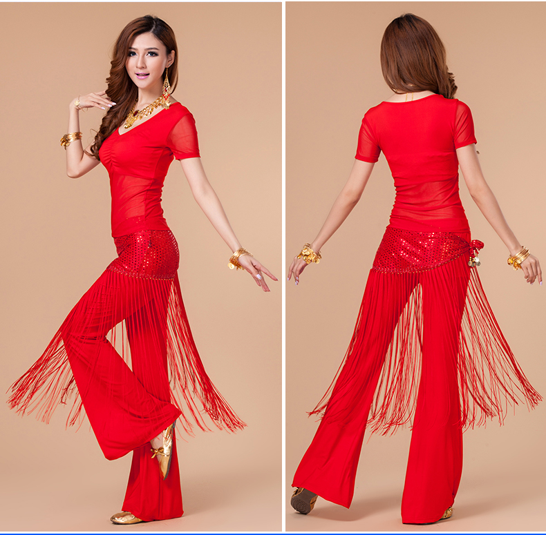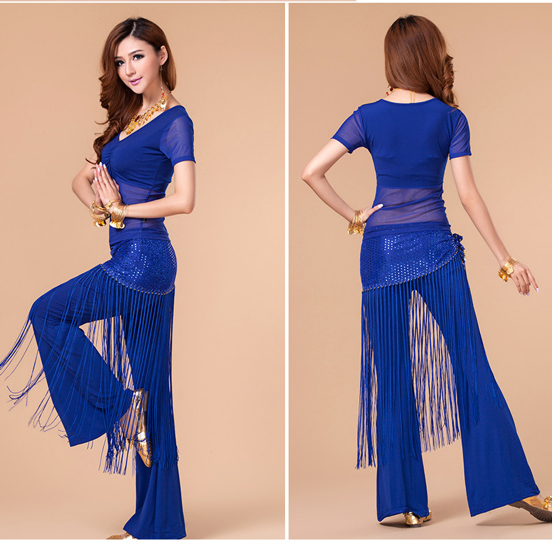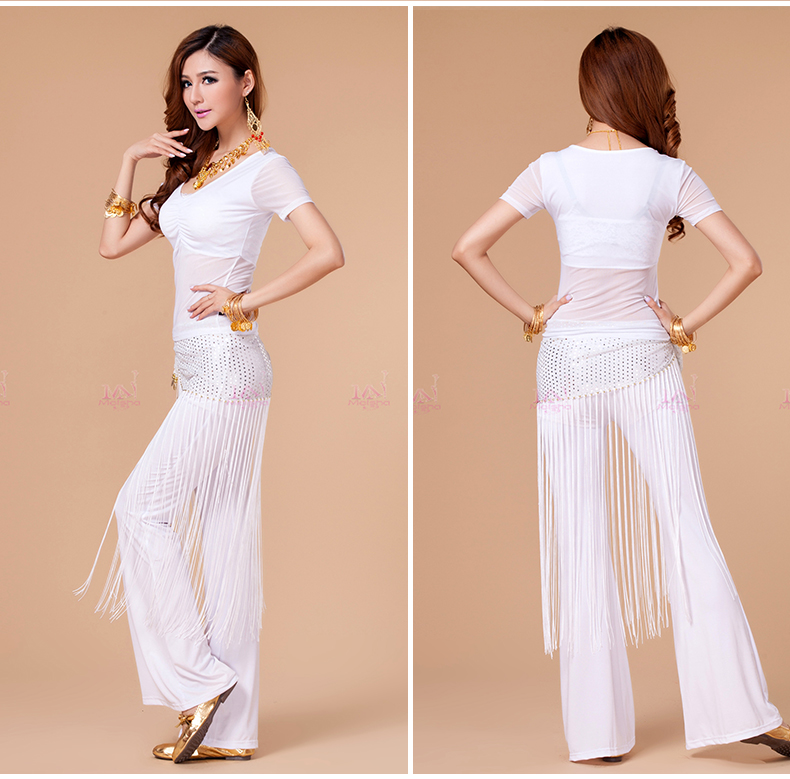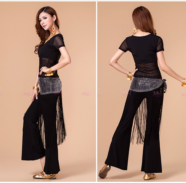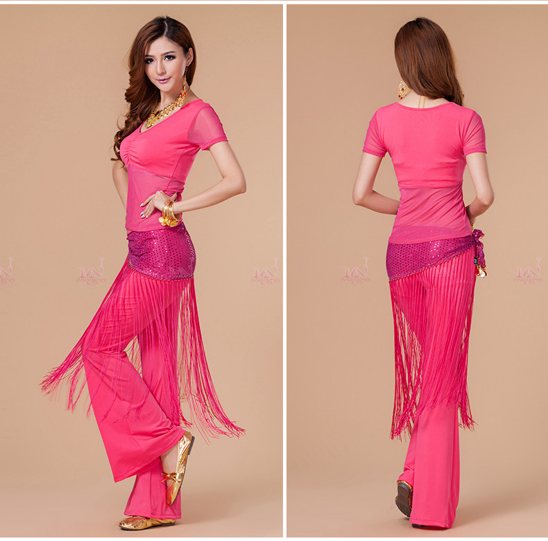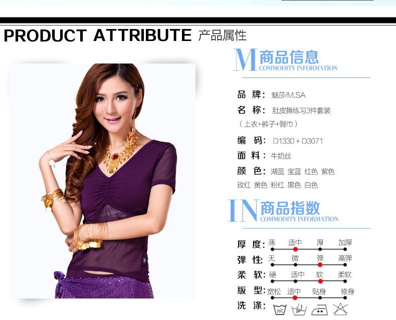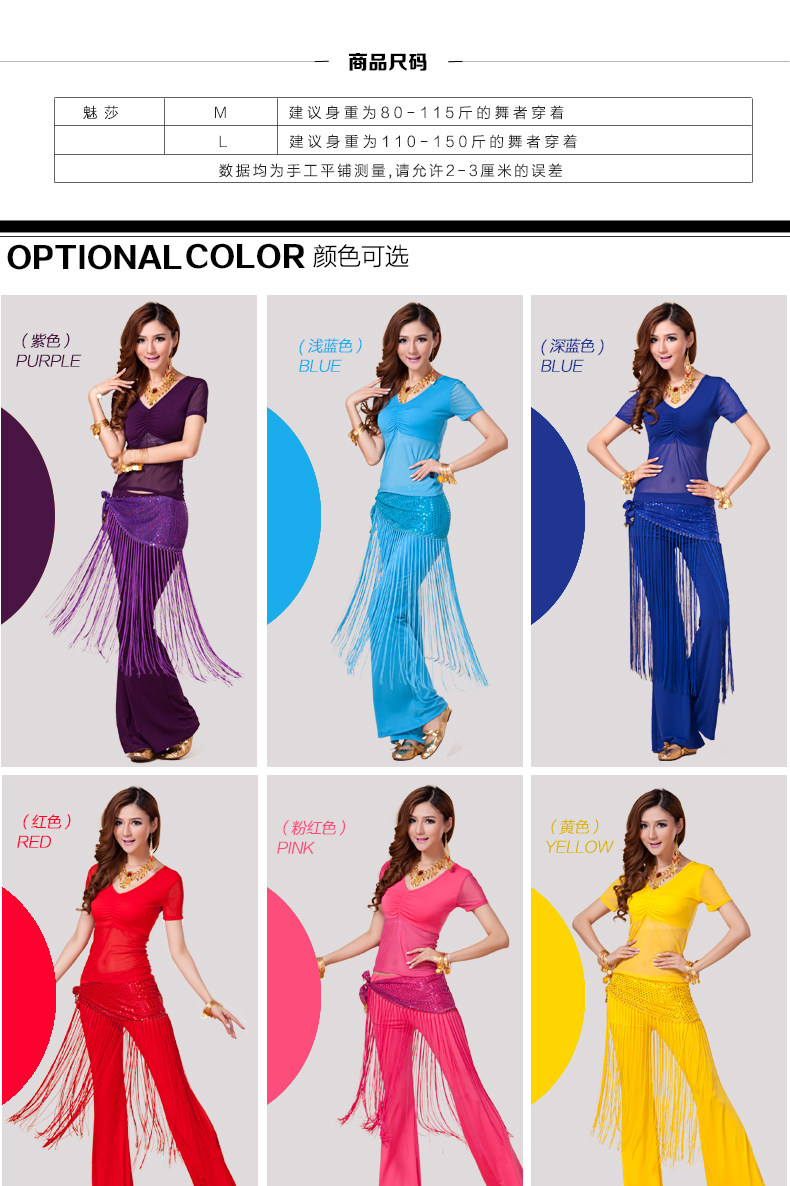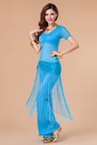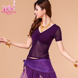 [魅莎 新款肚皮舞衣服装 肚皮舞练习服网纱上衣 短袖 九色可选]