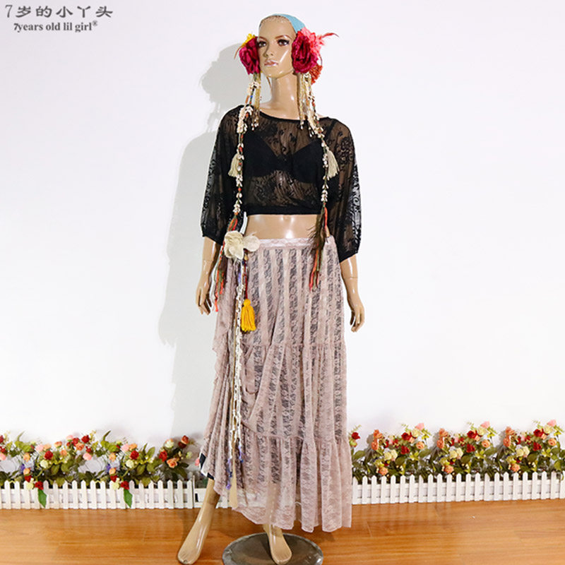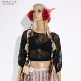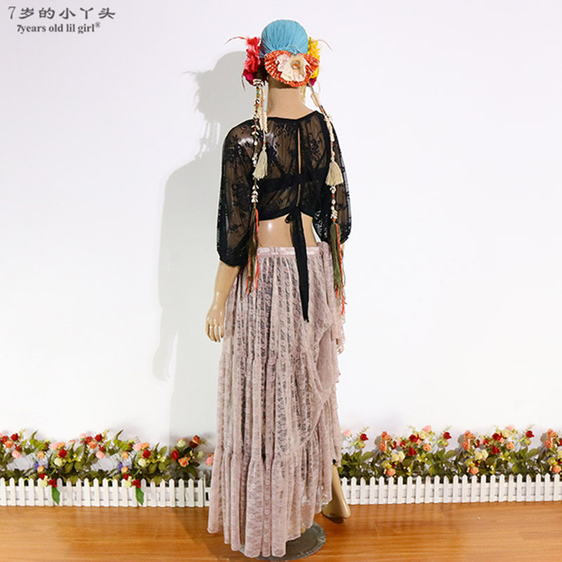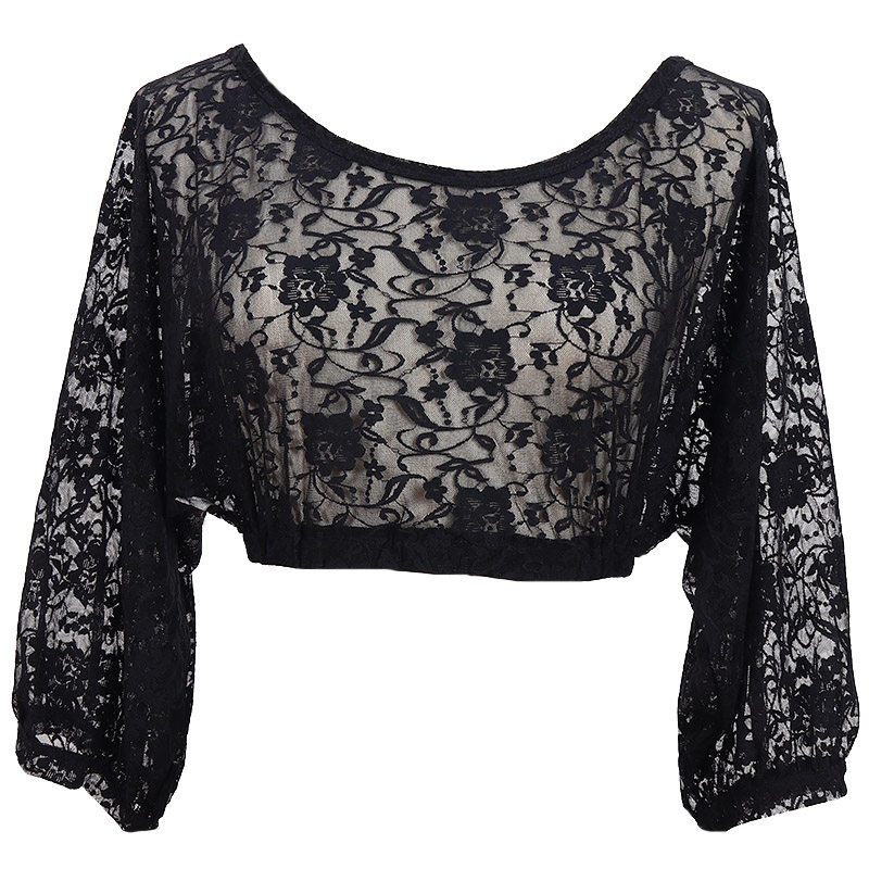 Танцевальный топ для живота для женщин 2019 Весна и лето Новый тренировочный костюм Корейский кружевной задний рукав летучих мышей Brr300