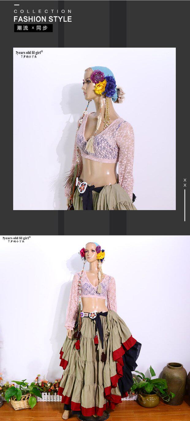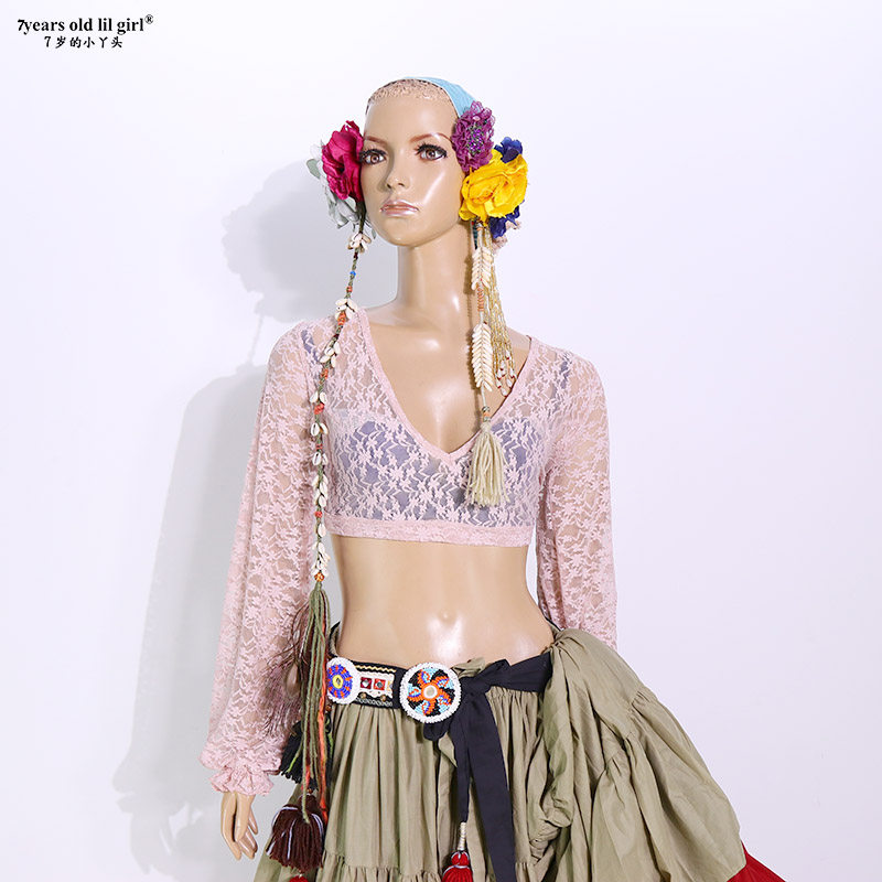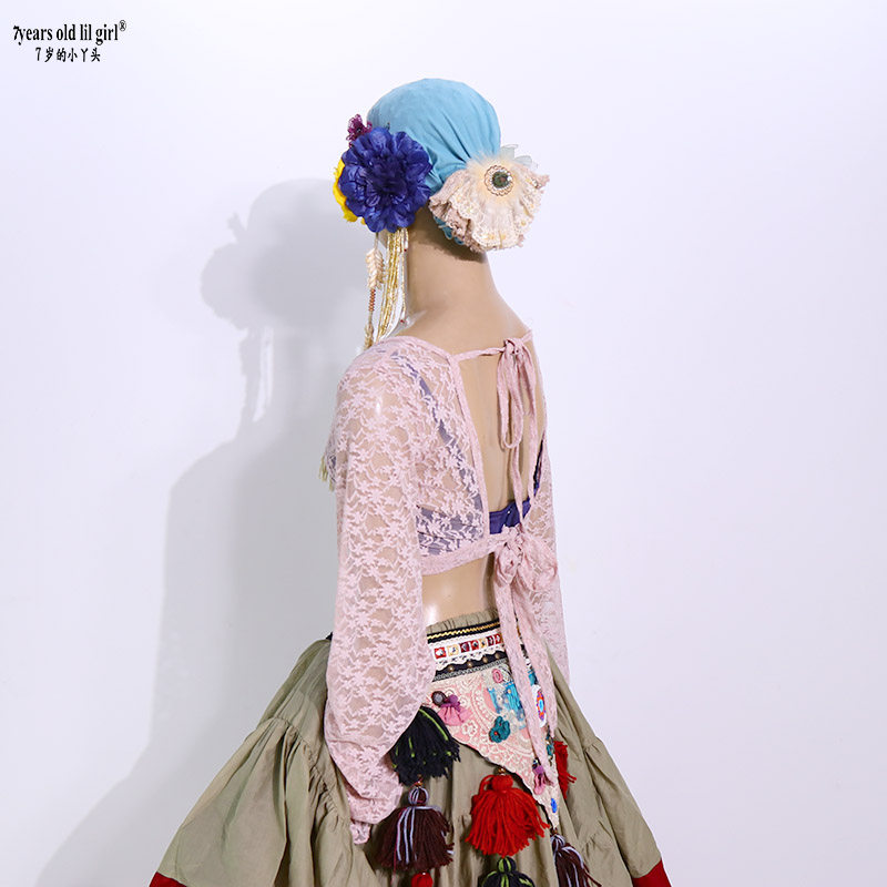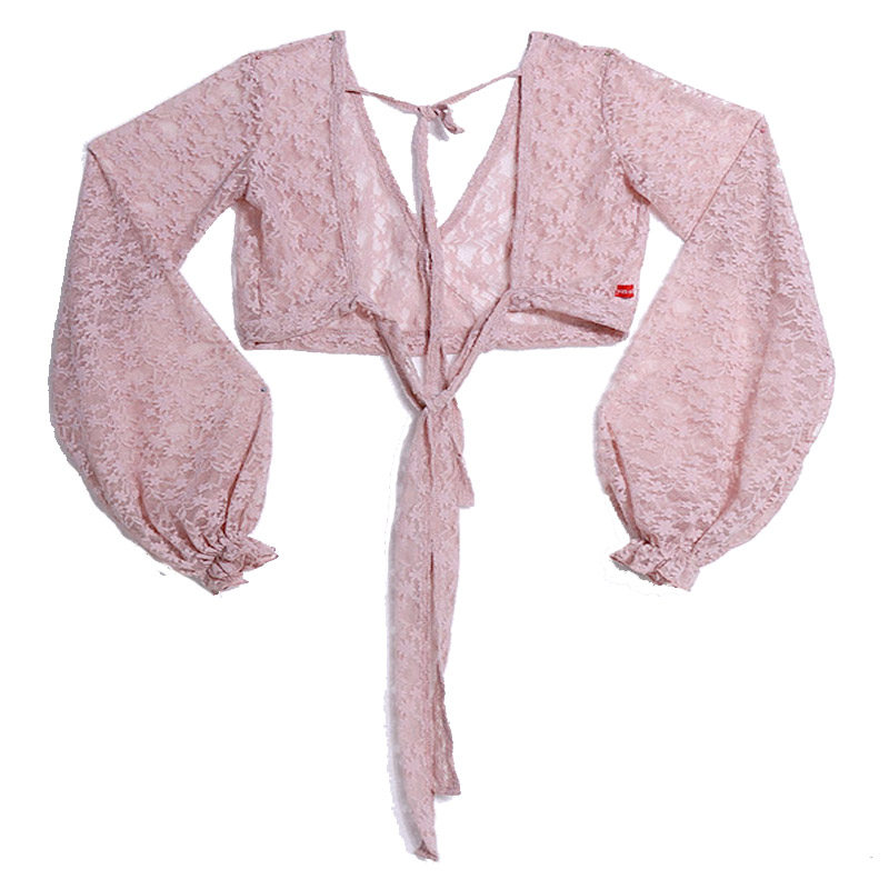 Дизайнерский лонгслив, кружевной фонарь, 2020, в корейском стиле, Южная Корея, V-образный вырез, с открытой спиной