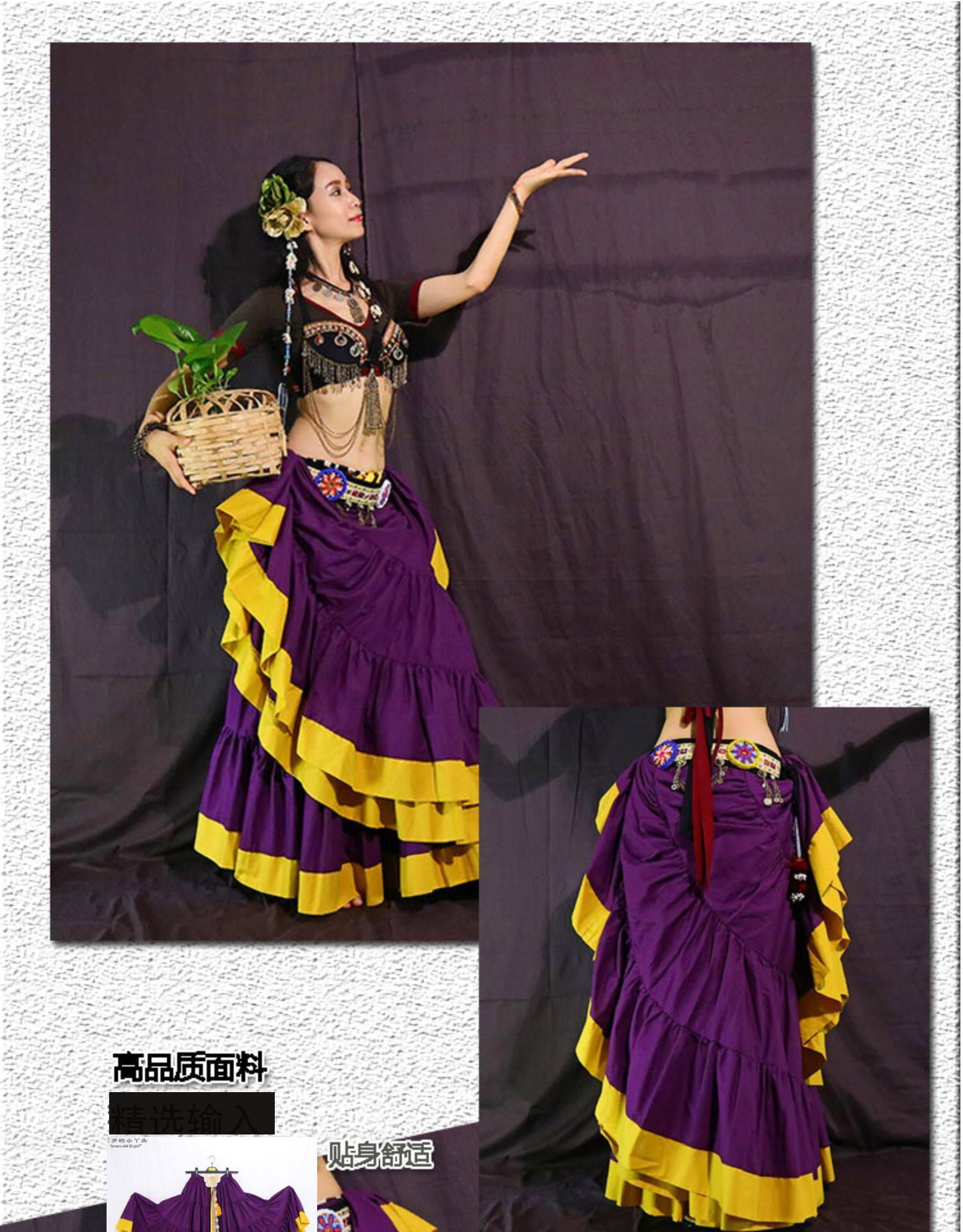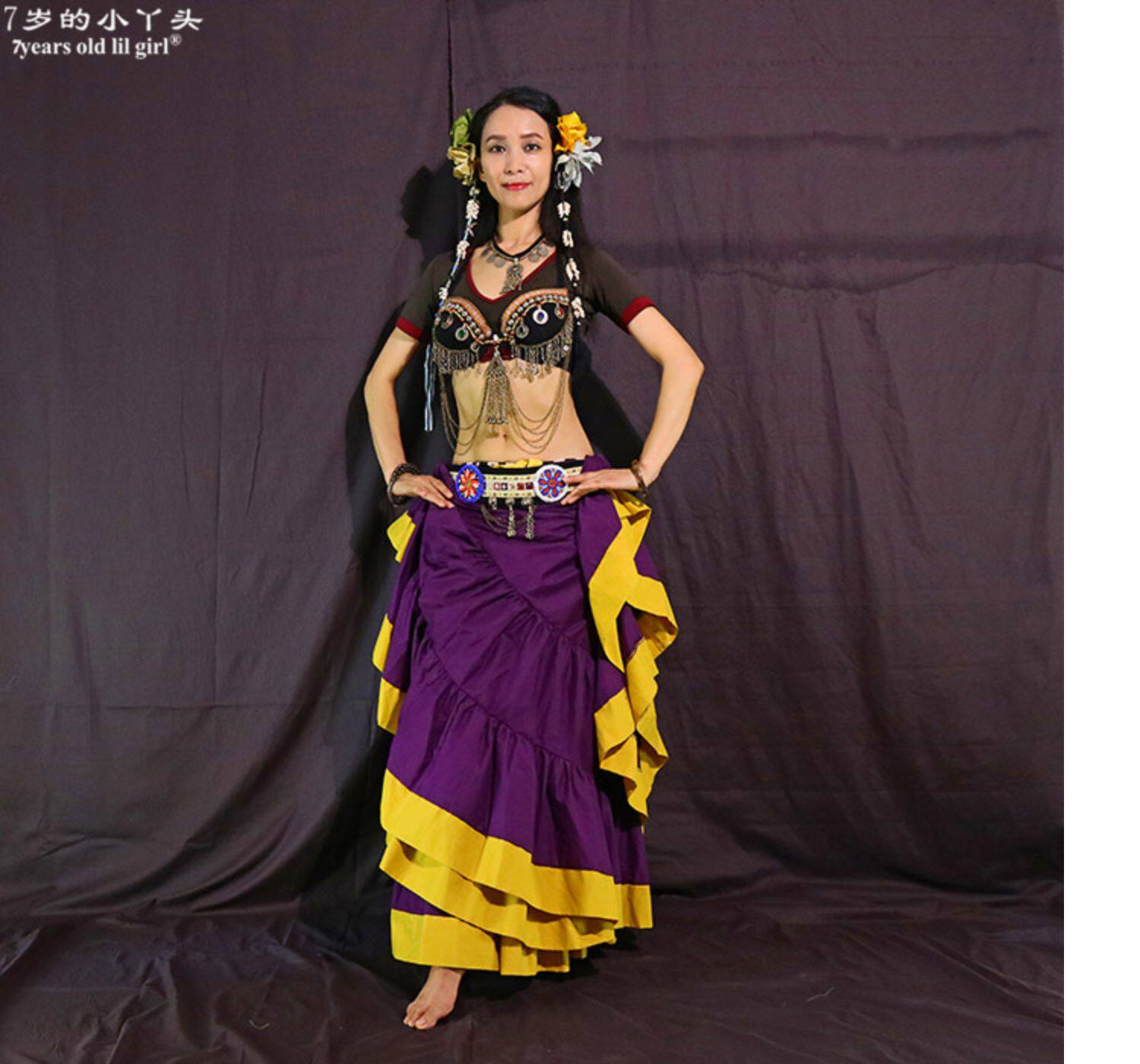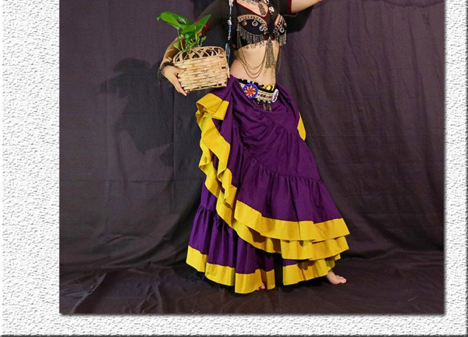 ATS Племенный живот танец Джип Босомиан все -коттон большая круглая юбка 4 Layer 16 Yards Горячие продажи CWW03