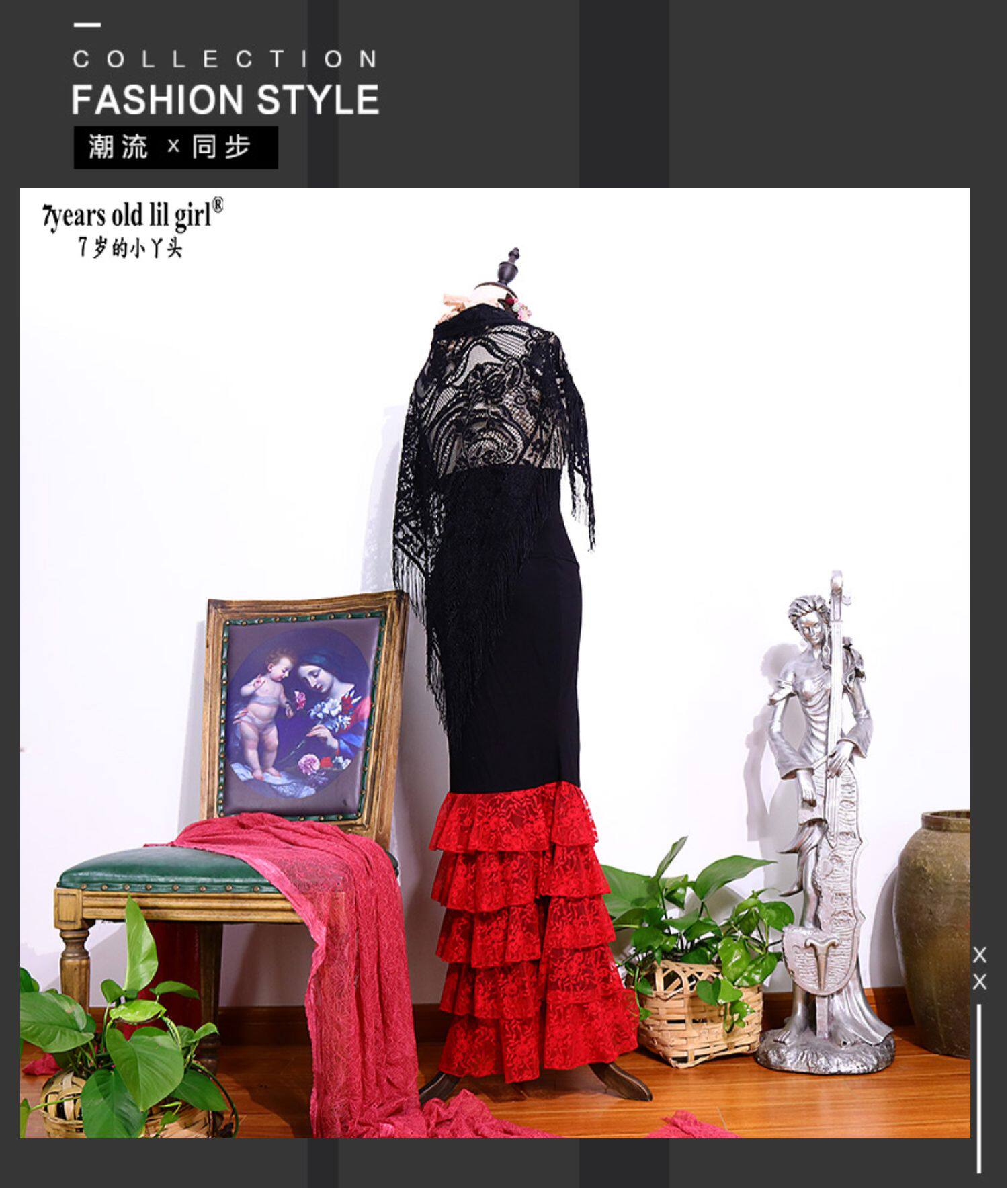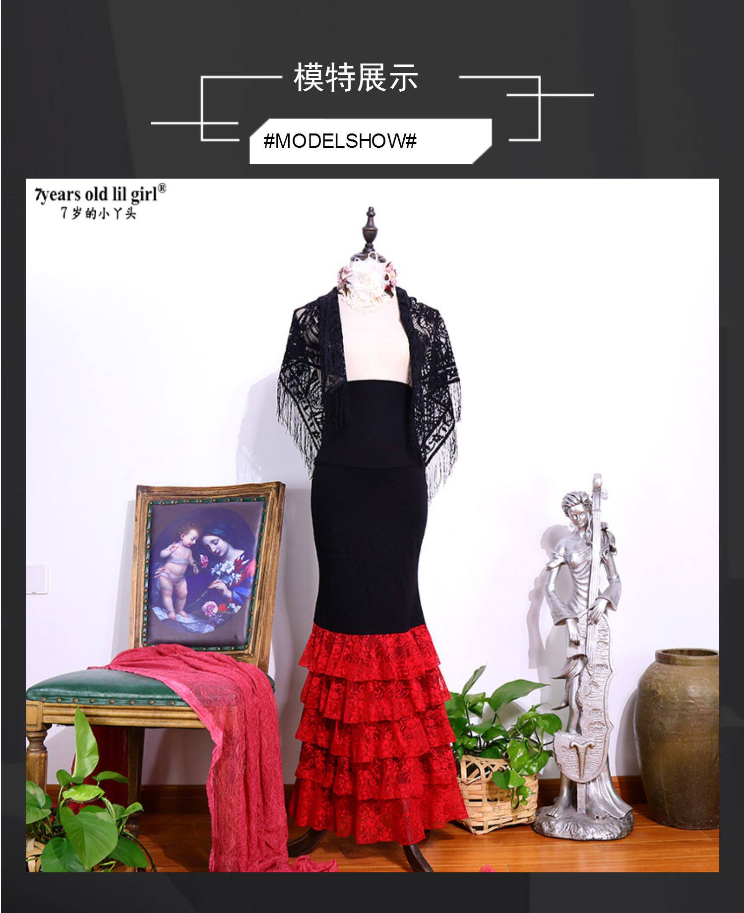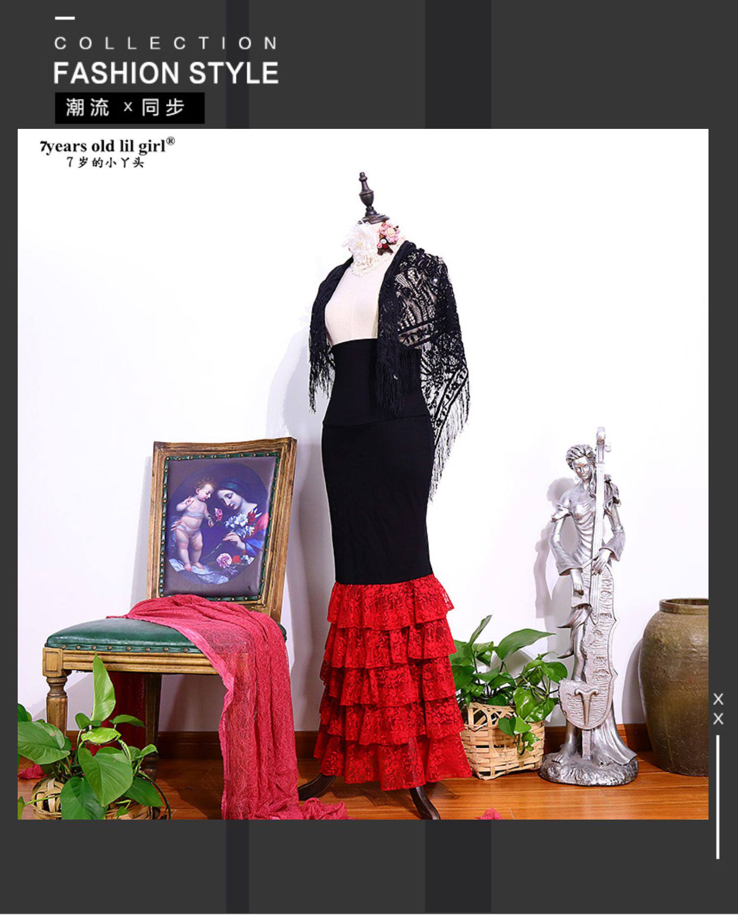 Фламинго танцевальная юбка 2023 Весна и лето Новая 5 -слойная юбка Lotus Leaf Leaf Lob