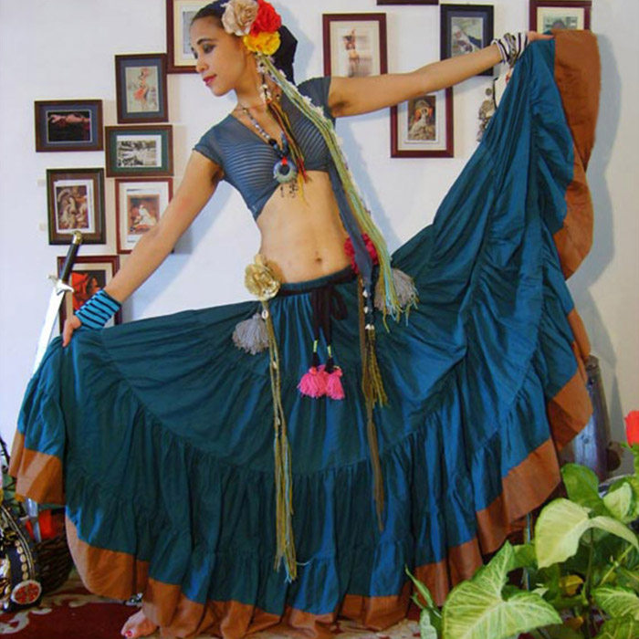 Этот продукт является одной из богемных танцевальных юбков.Танцоры размахивают своими телами, рисуют красивую дугу или рог юбки360Открывая большую юбку, как танцевальная бабочка.В то же время его также можно носить как регулярное обслуживание, что сделает вашу простую жизнь омолаживанием, добавляя очаровательную и демонстрируя естественную и нежную красоту женщин.