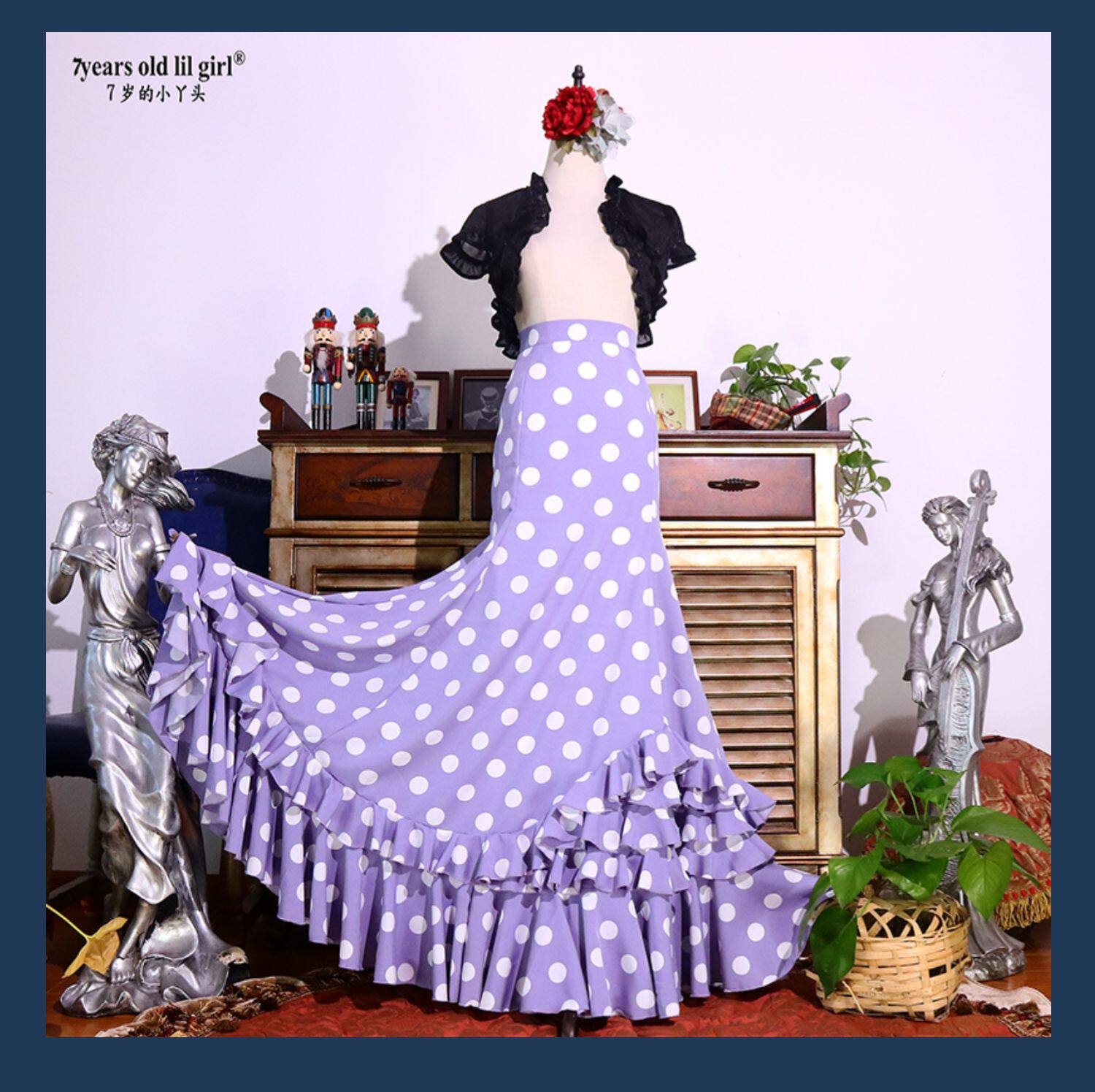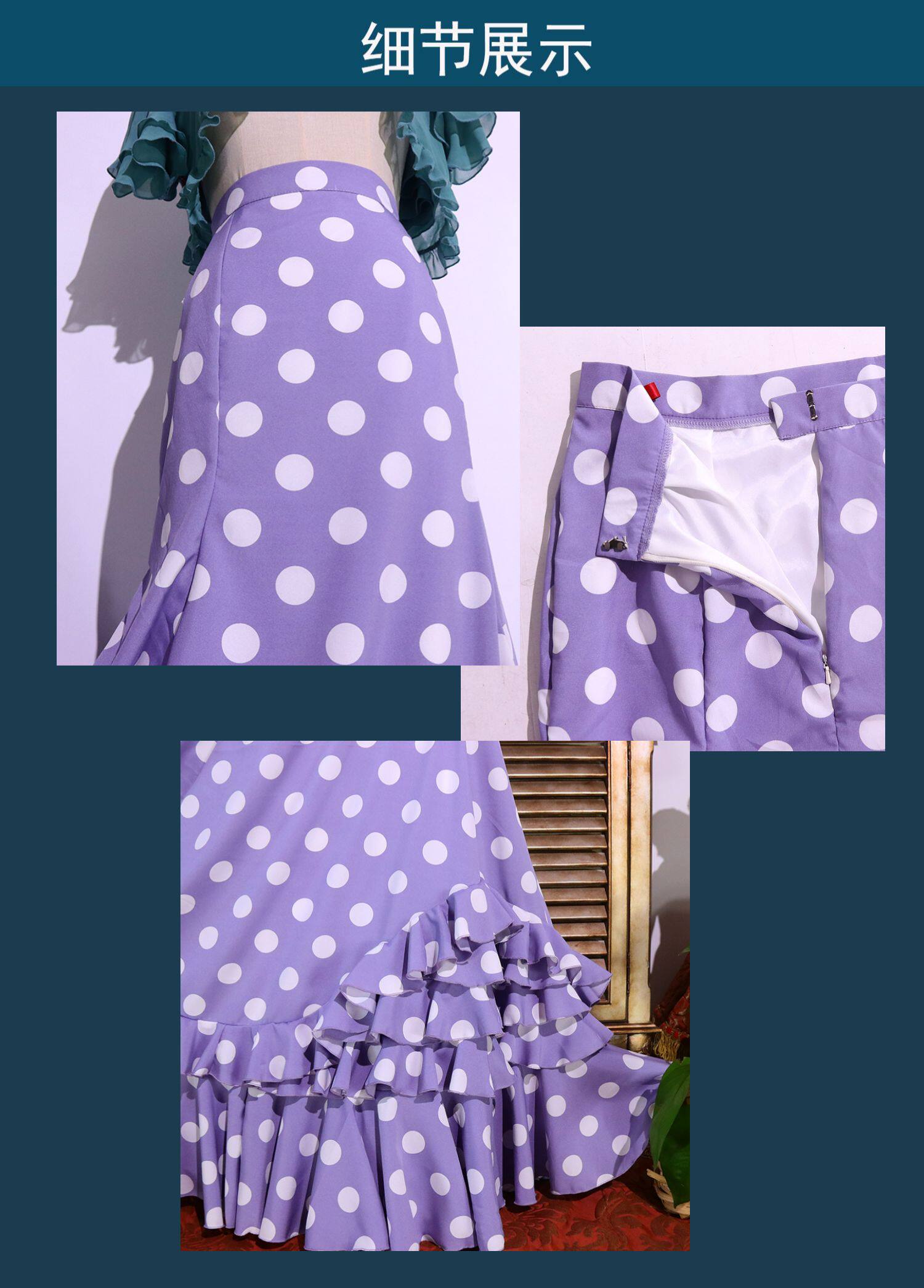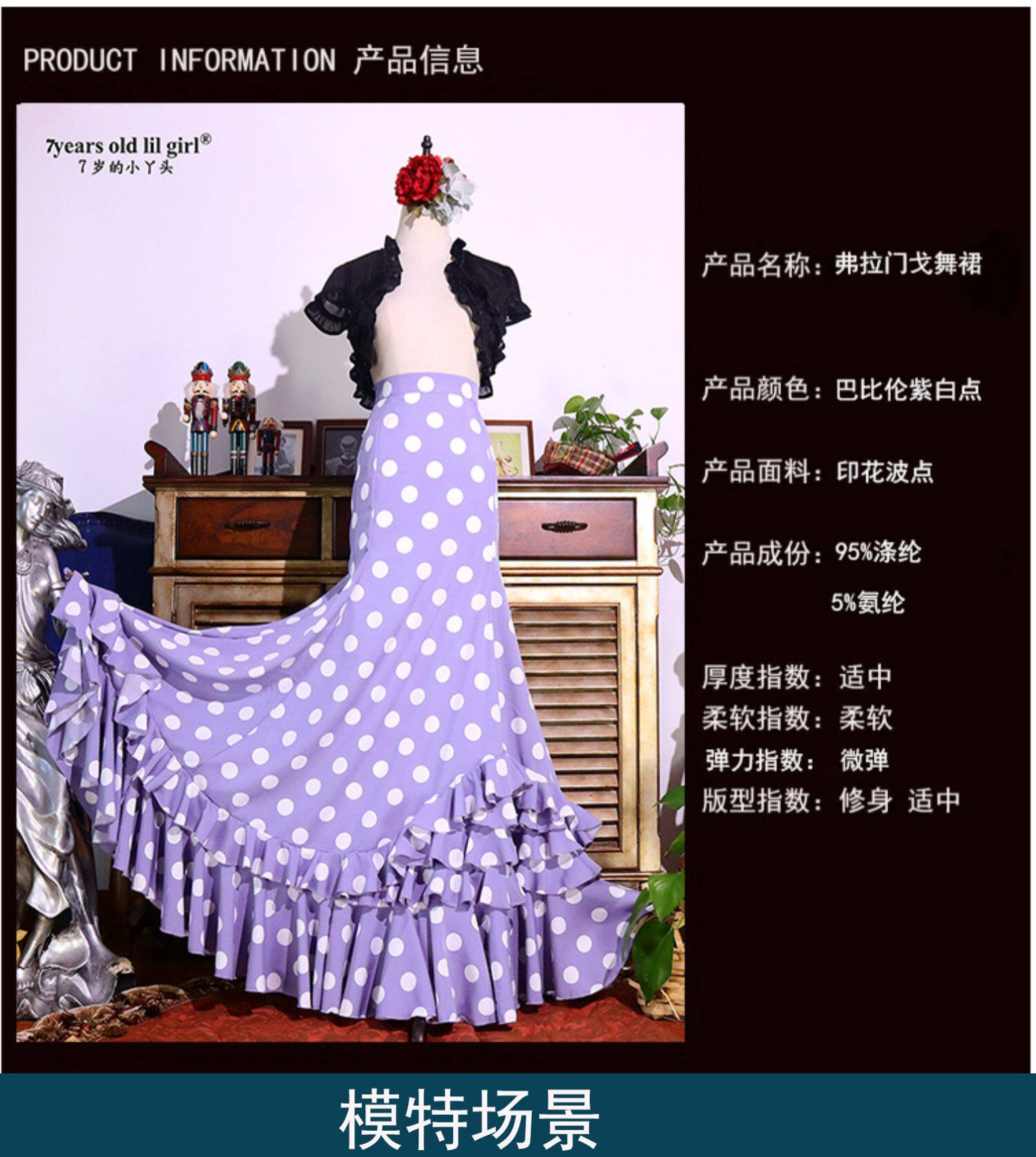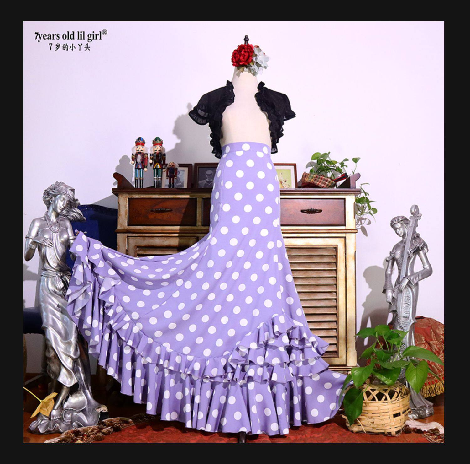 Flamenco Испанская Foran Gobo Dot Dot Dance Skirt Bag Multi -Layer Ruffled Edge Dtt51