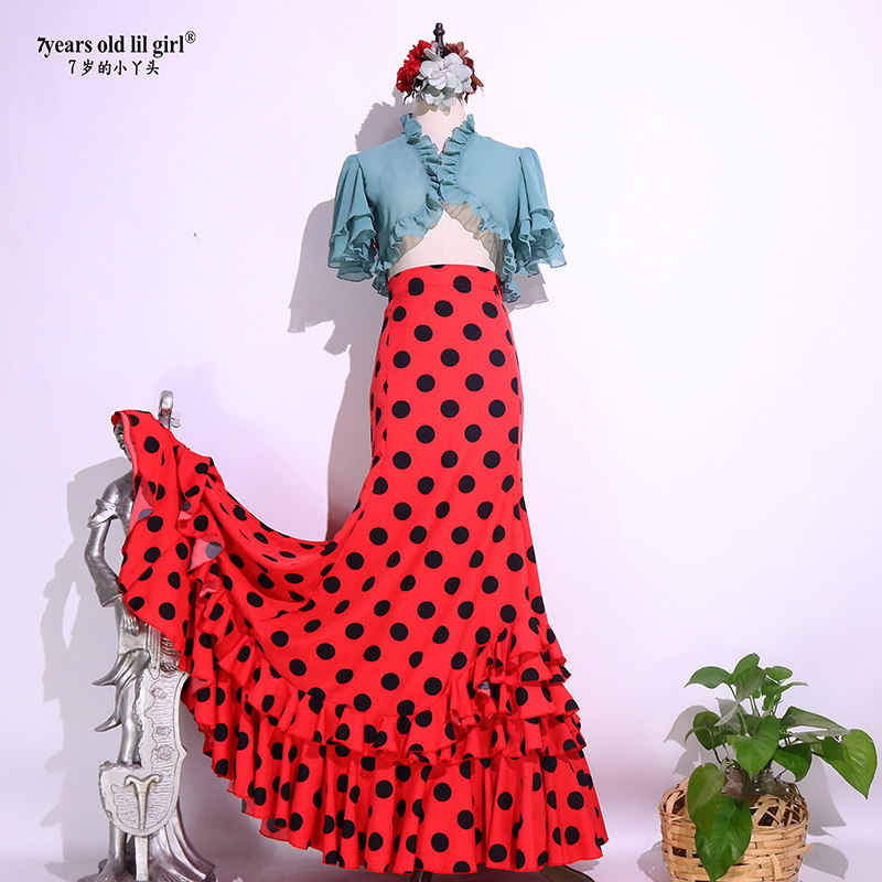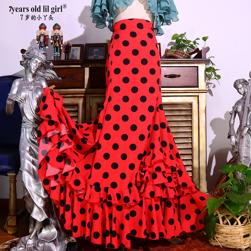 2021flamenco Испания танцевальная юбка Flamenco Tance Dot Dot Dots, сумка бедра многослойный рюша