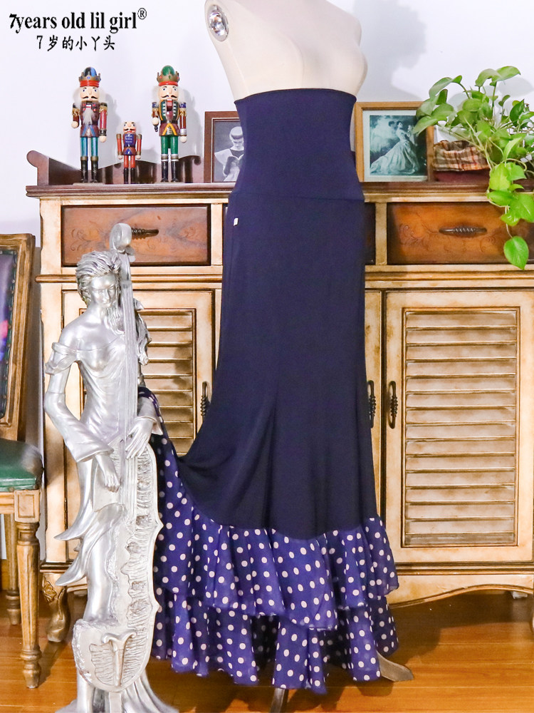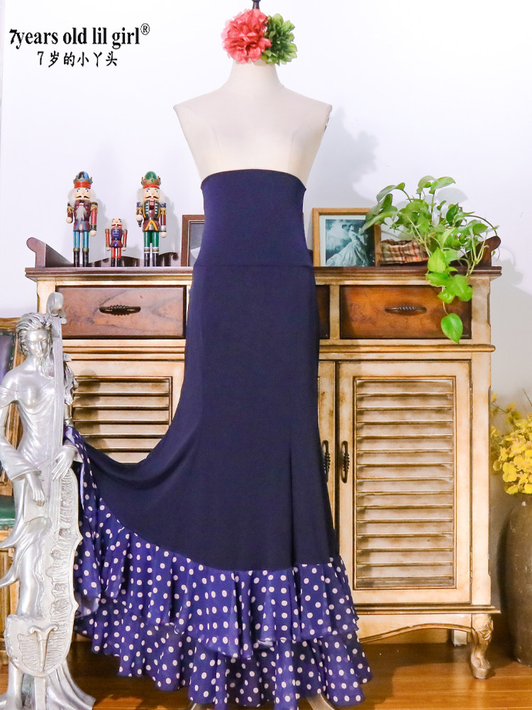 Бренд танцевального обслуживания горячий продажа фламенко фламенко Франминго танцевальная юбка женщина норвежская конопляная рыбная хвост Большая юбка синяя бу2