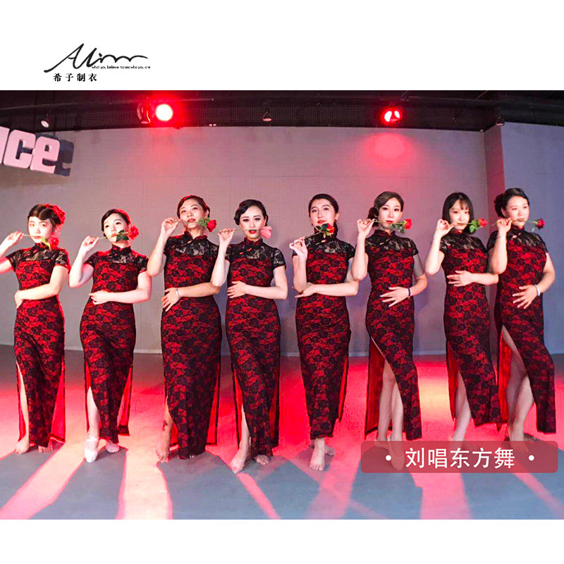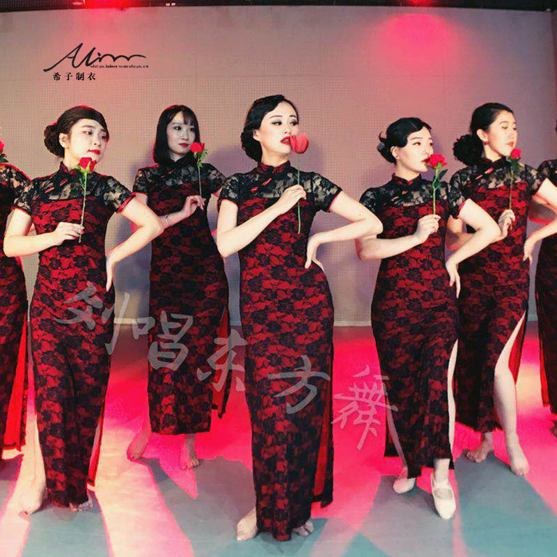 Костюм, ципао, длинная юбка, кружевная спортивная одежда