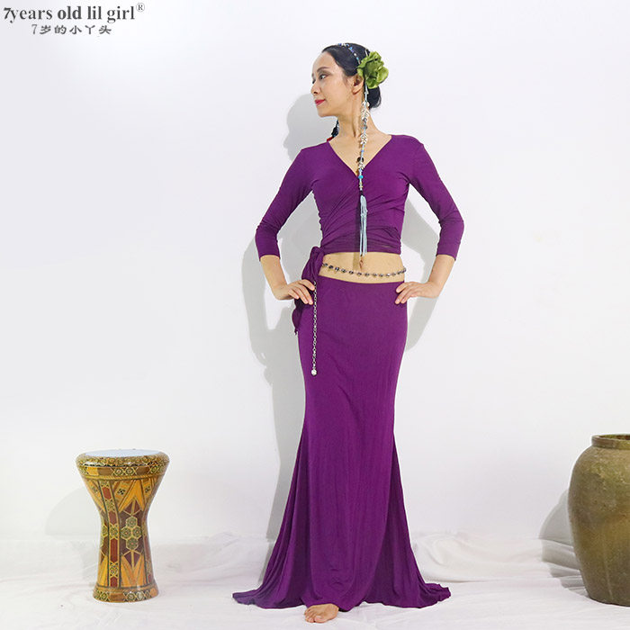 Семь -лет -Служба практики танцев с животом маленькой девочки показывает новые продукты модальная хлопчатобумажная бабочка набор хип -юбки DCC100