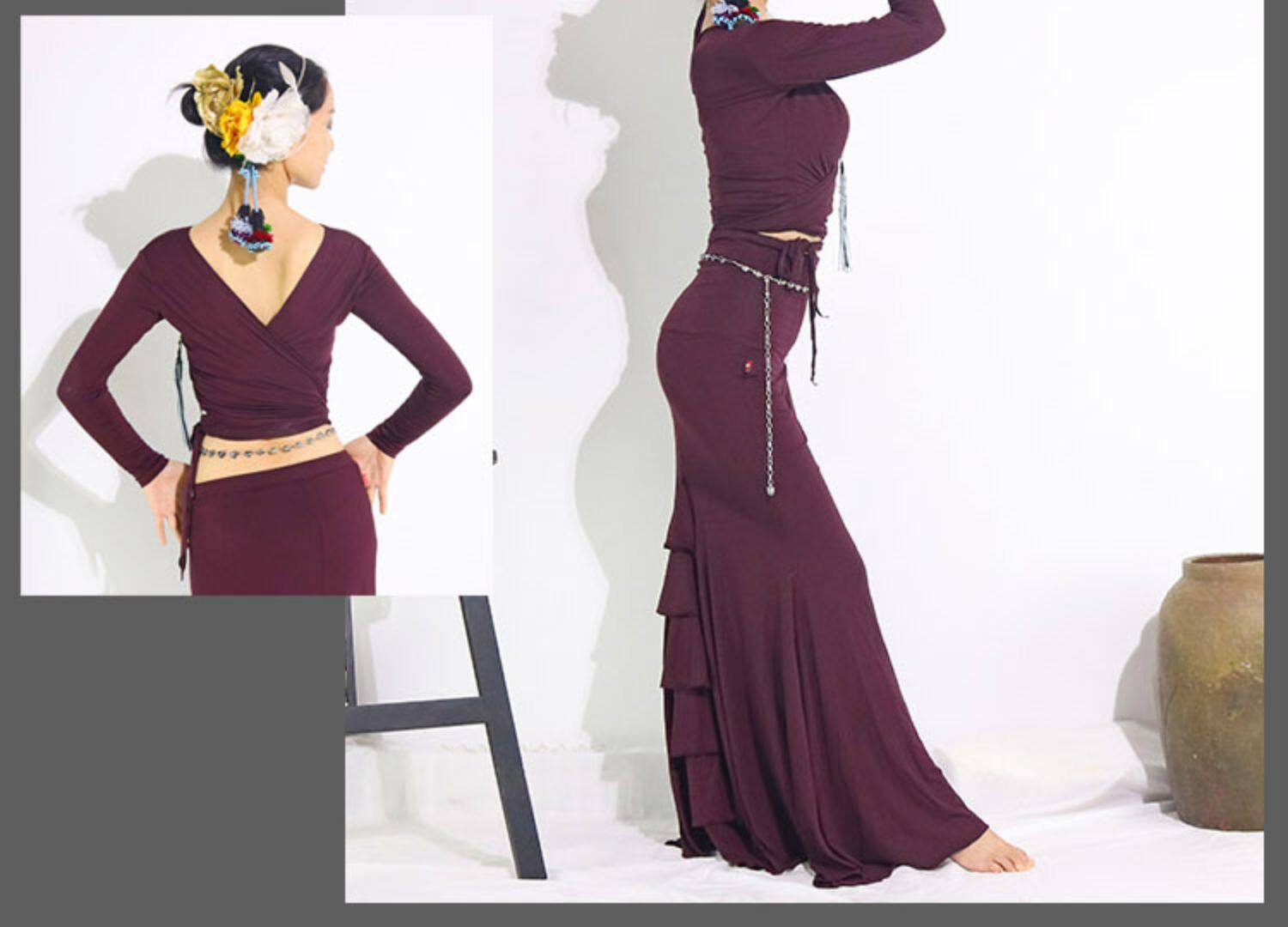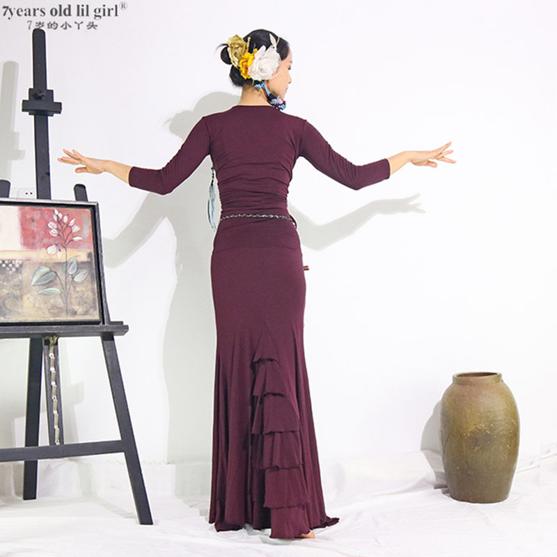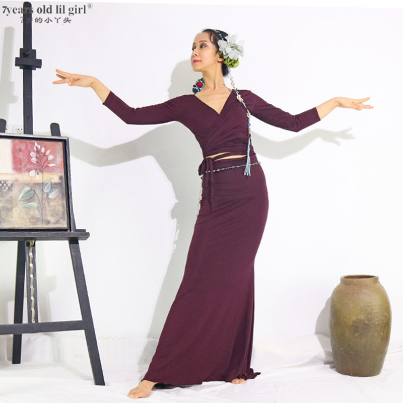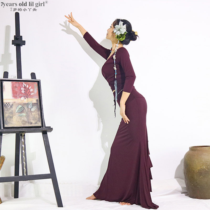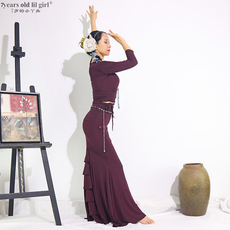 Самые продаваемые тренировочные костюмы для танца живота Фламенко Фламенко новая модальная вискоза с откидной поясной сумкой и юбкой на бедрах
