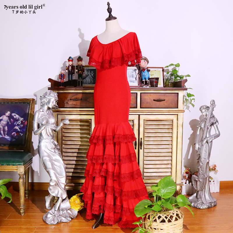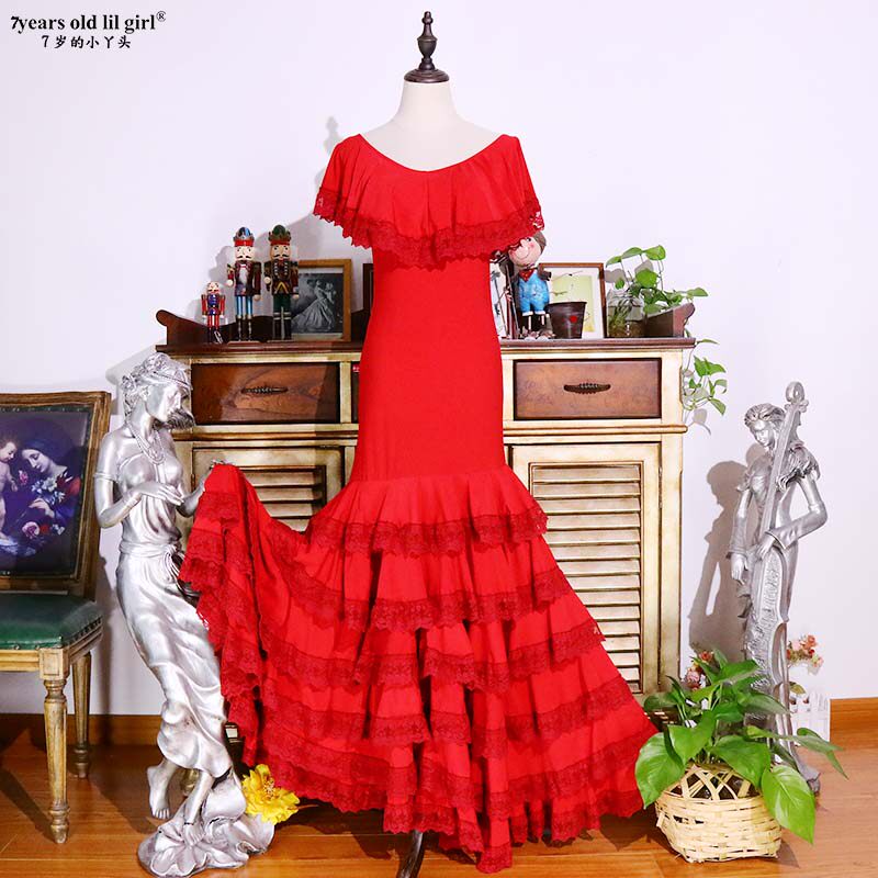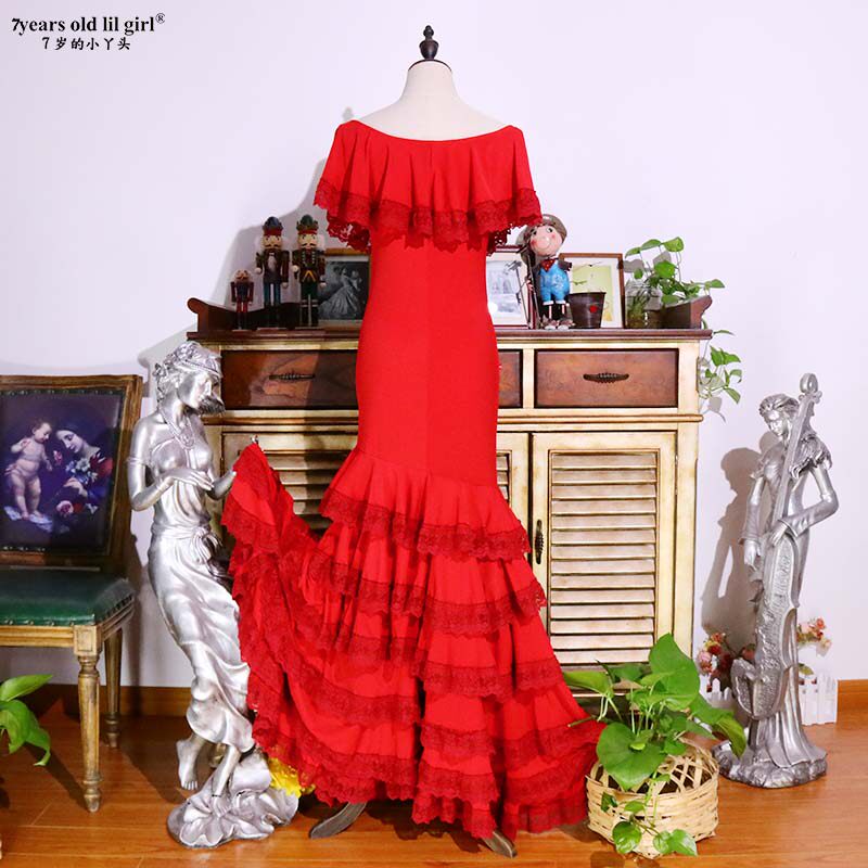 Оригинальная бренда фламенко фламенго тренировочная юбка испанская боковая сторона кружев