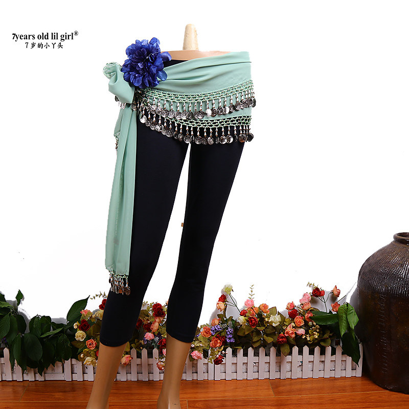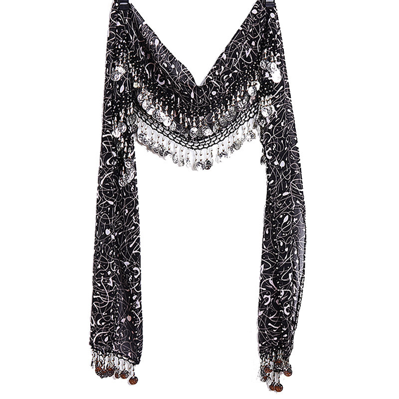 Танец живота Scarf Scarf Итальянский шифоновый прямоугольный 2 ряд серебряной монеты талию дизайн бренда BQ31 33