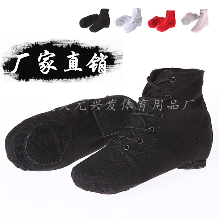 Танцевальная обувь мягкая подошва высокая высокая черная холст джазовая обувь учитель посвященной современной танцевальной комнатой