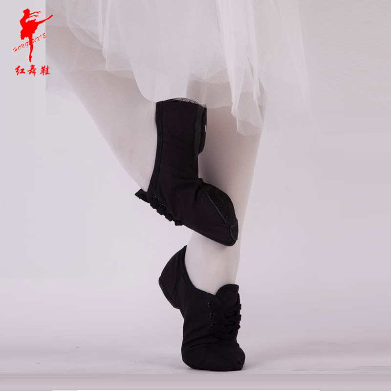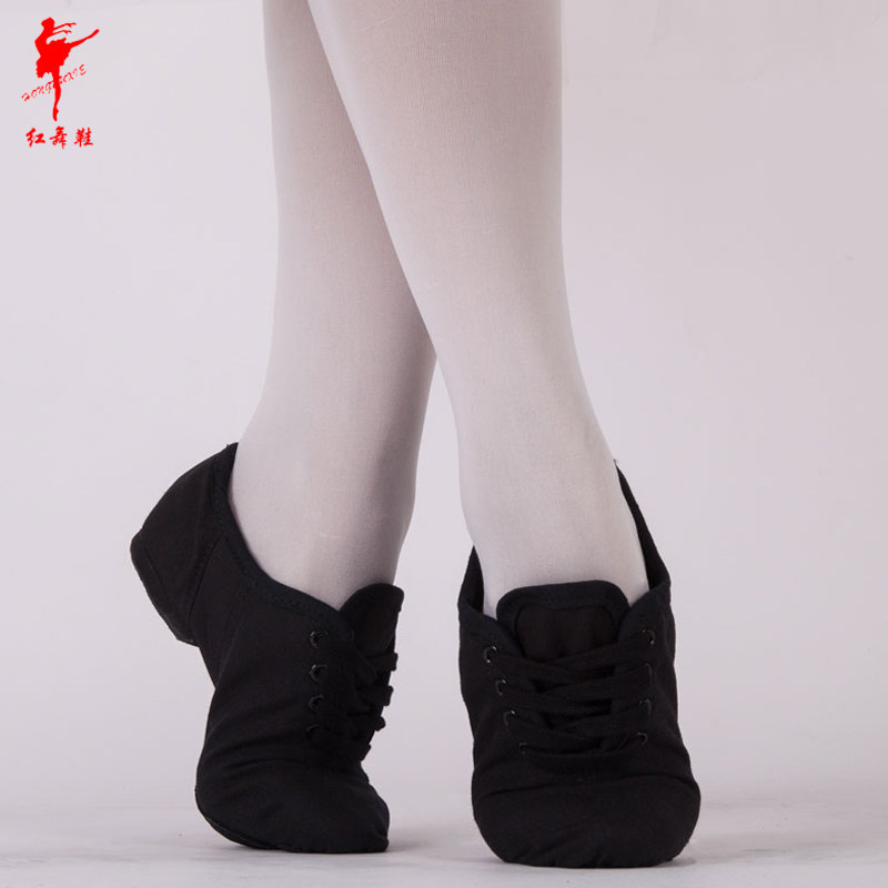Красная танцевальная обувь мягкие подошвы тренировочная обувь женская взрослая холста джазовая обувь кружевная танцевальная обувь учитель специальная обувь 1009