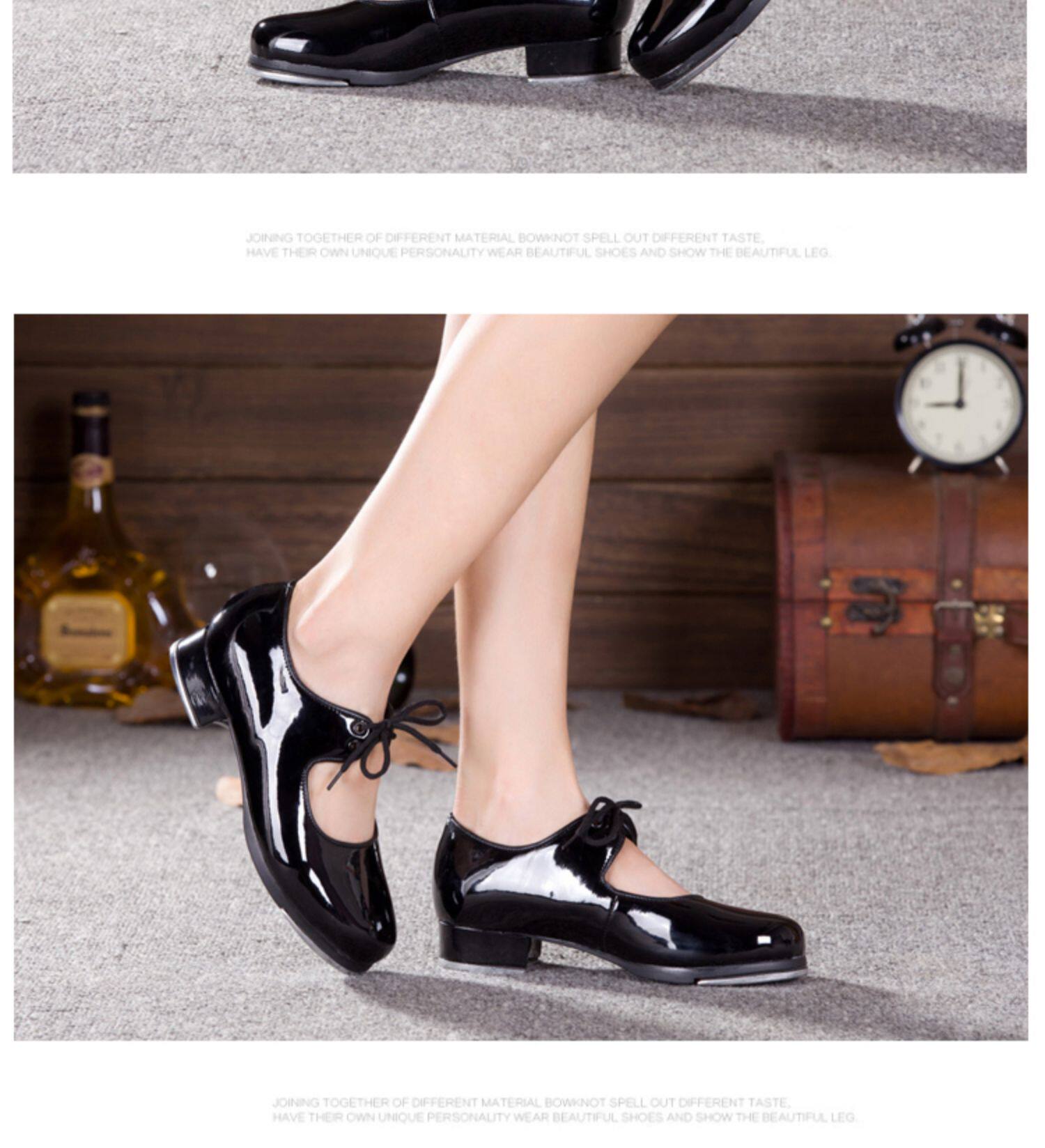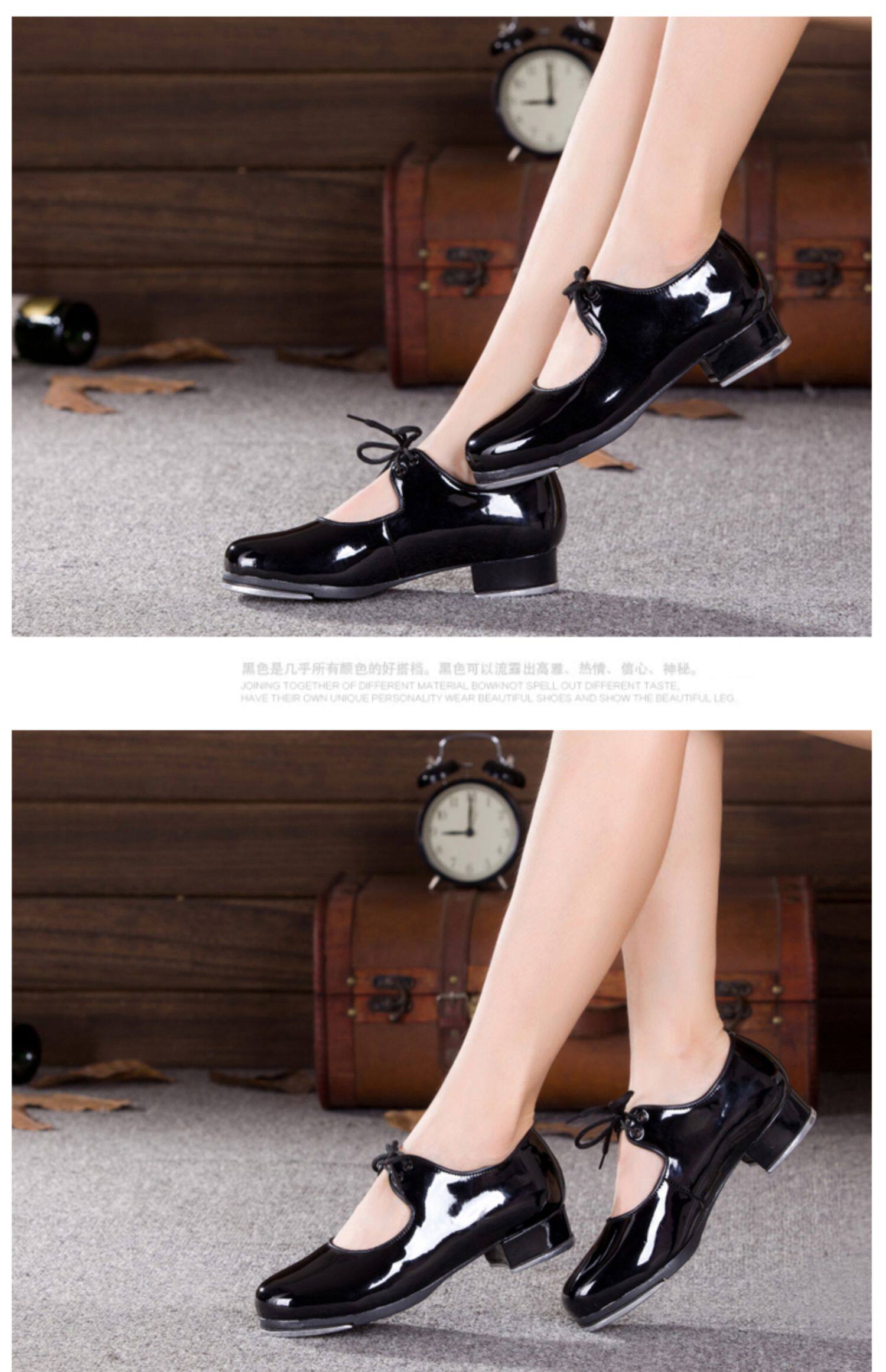 Девочки и дети пьют танцевальные туфли Liange Женские взрослые черные патентные кожа