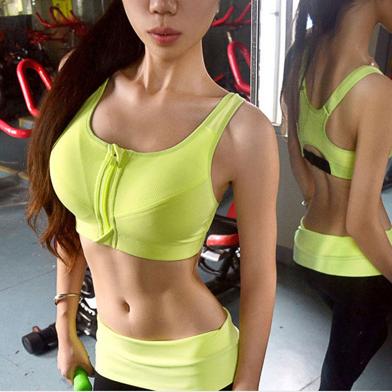 Одежда для йоги для спортзала, противоударный топ с чашечками, быстросохнущая майка, спортивный костюм с молнией, бюстгалтер, для бега