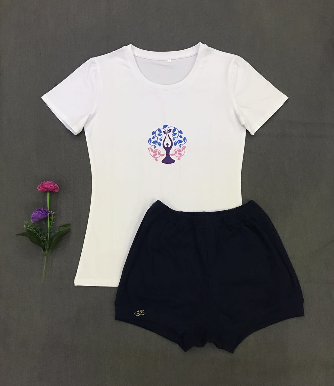 Одежда для йоги, комплект, дышащие хлопковые эластичные летние шорты подходит для мужчин и женщин, короткий рукав, впитывает пот и запах