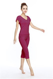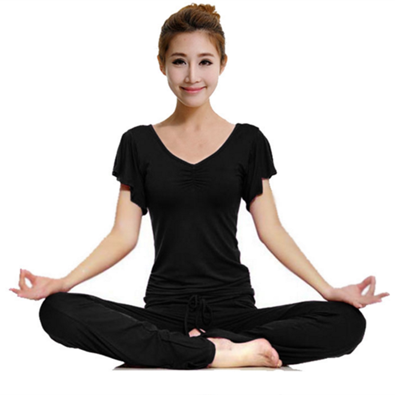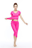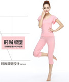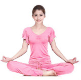 Одежда для йоги, комплект, хлопковые спортивные штаны для спортзала, короткий рукав, по фигуре, облегающий крой