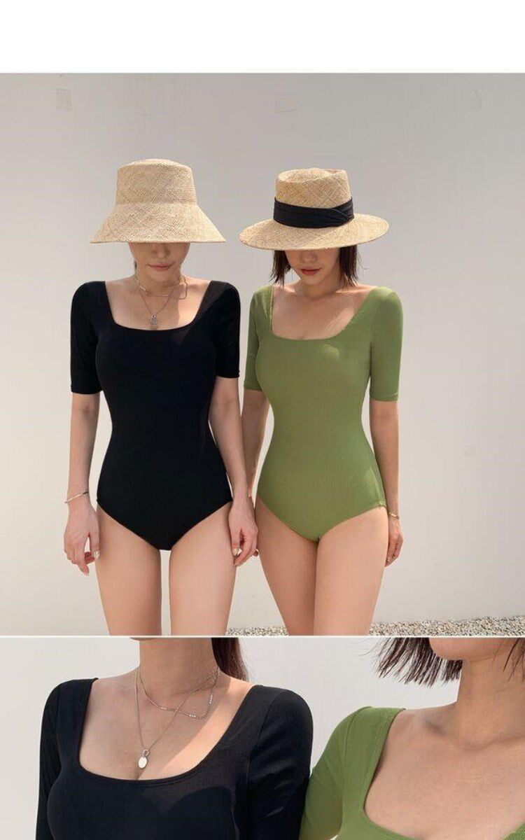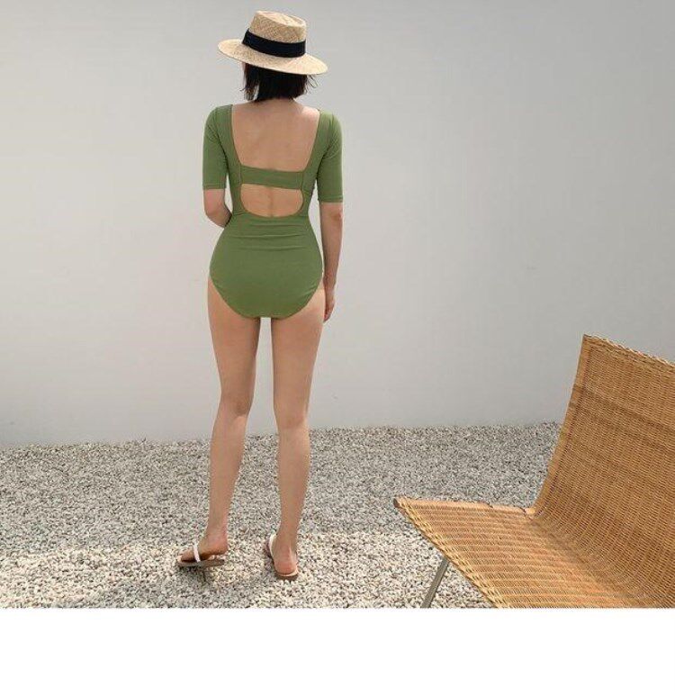 Брендовый купальник, по фигуре, популярно в интернете, в корейском стиле, короткий рукав