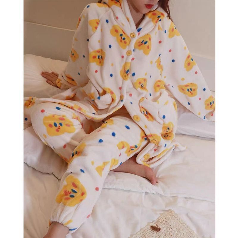 Пижама, фланелевый милый банный халат, демисезонное термобелье, осенний коралловый бархатный лонгслив для школьников, увеличенная толщина