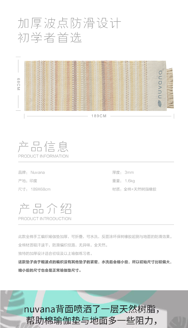 Хлопковый плетеный легкий и тонкий нескользящий коврик для йоги для путешествий, Индия