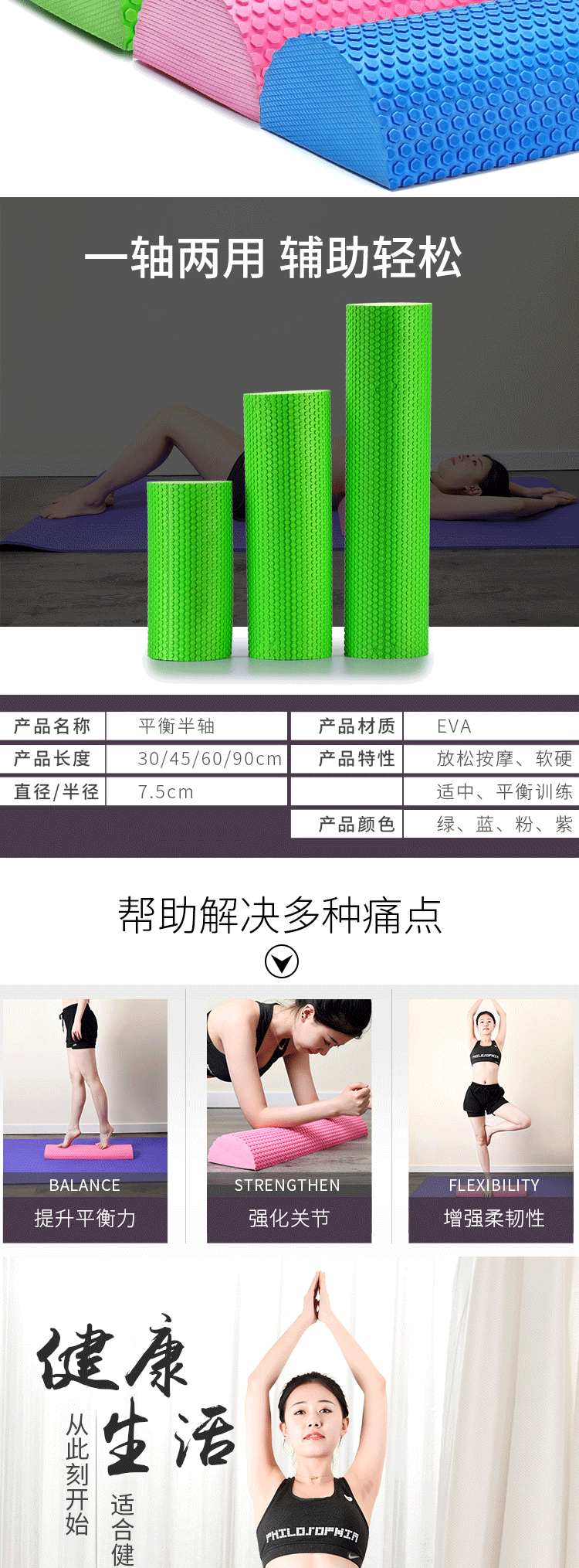 Полумесяц полу -цилиндрический йога -столб половина оси релаксация баланса баланса палочка плавающей запятой пеной пеной