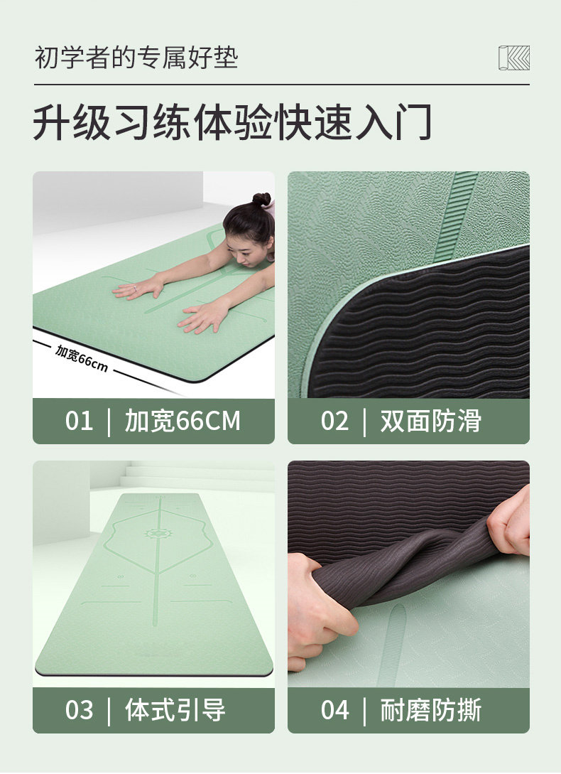 Длинный нескользящий коврик для йоги, спортивные стельки для спортзала подходит для мужчин и женщин, ковер, увеличенная толщина, подходит для начинающих