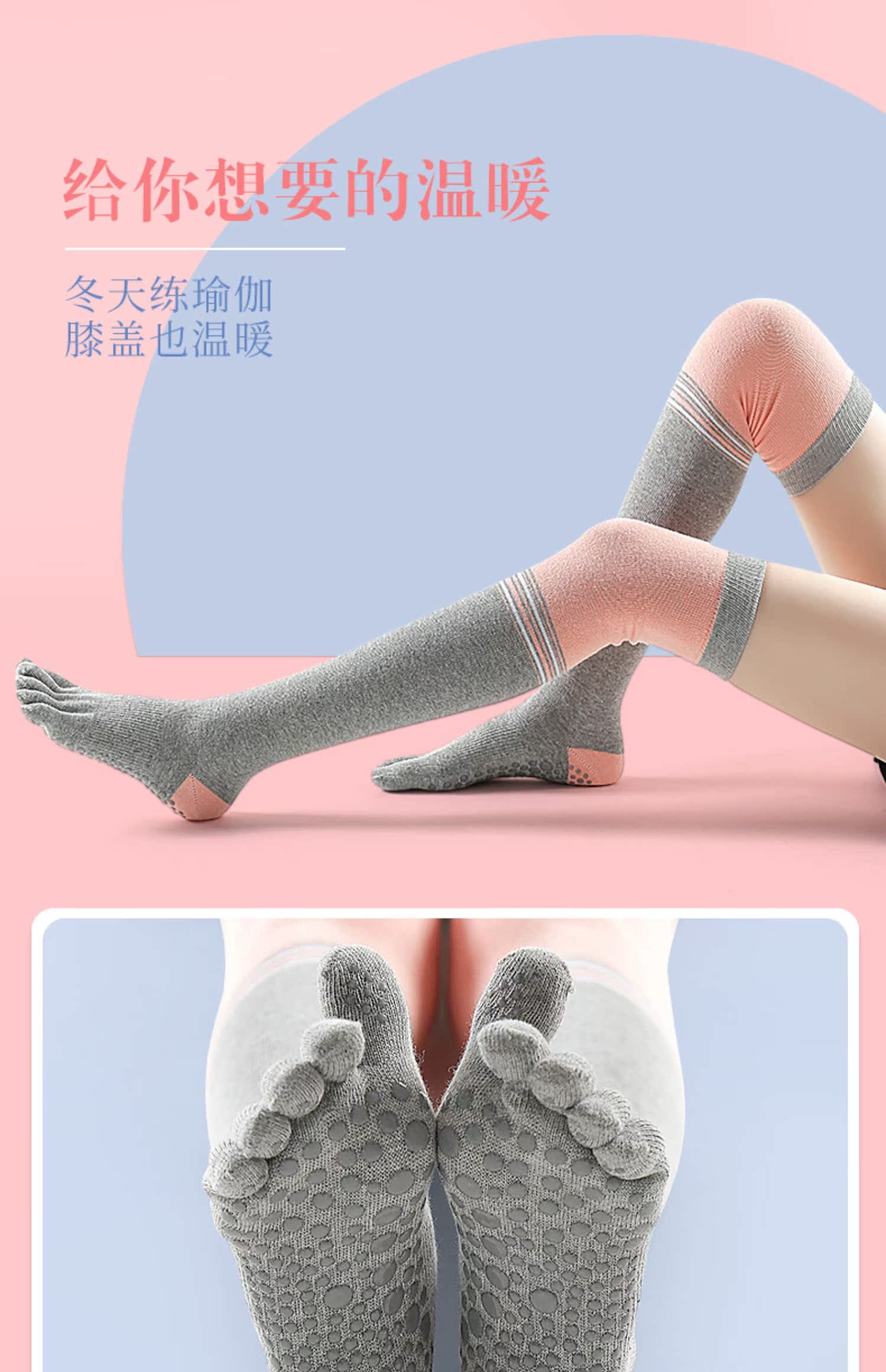 Нескользящие демисезонные носки для йоги, средней длины, подходит для начинающих