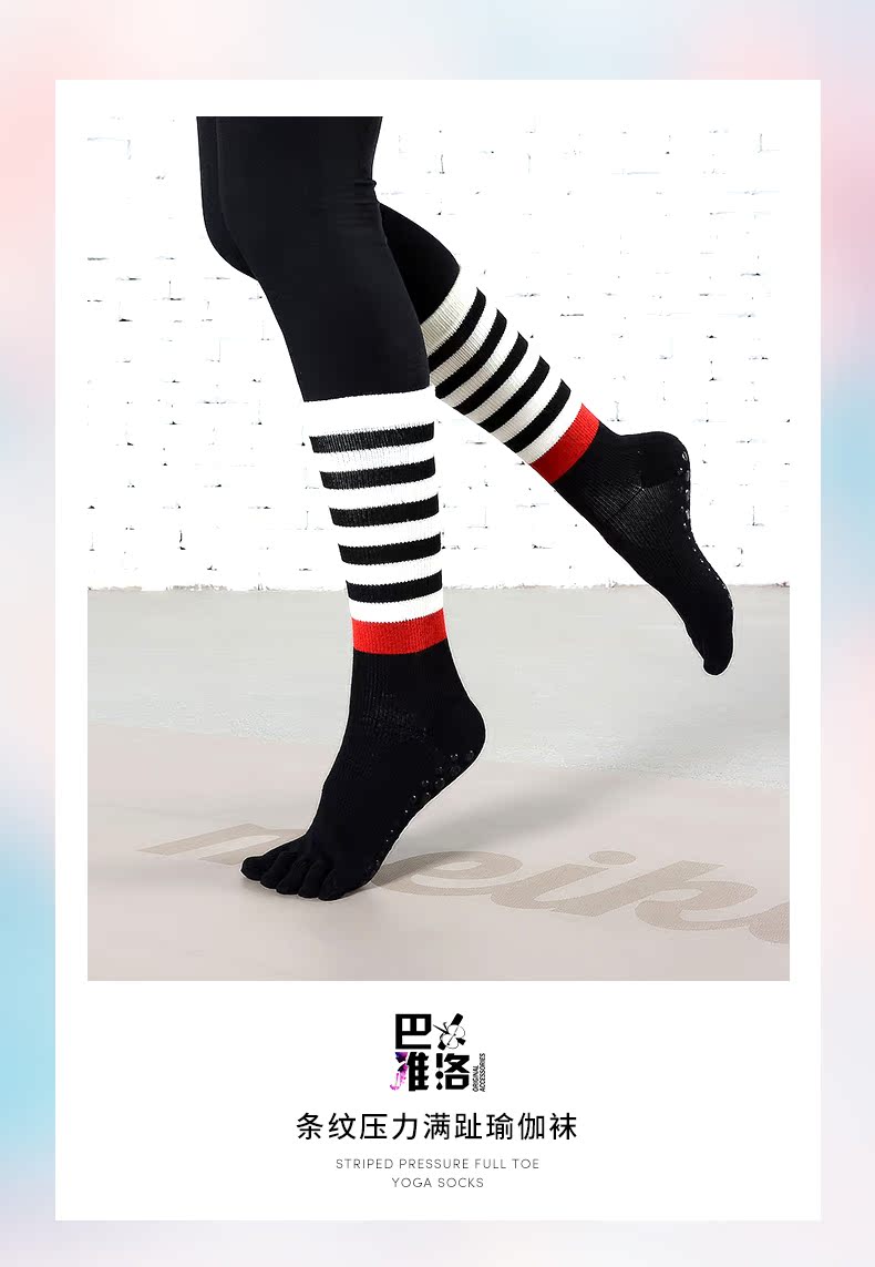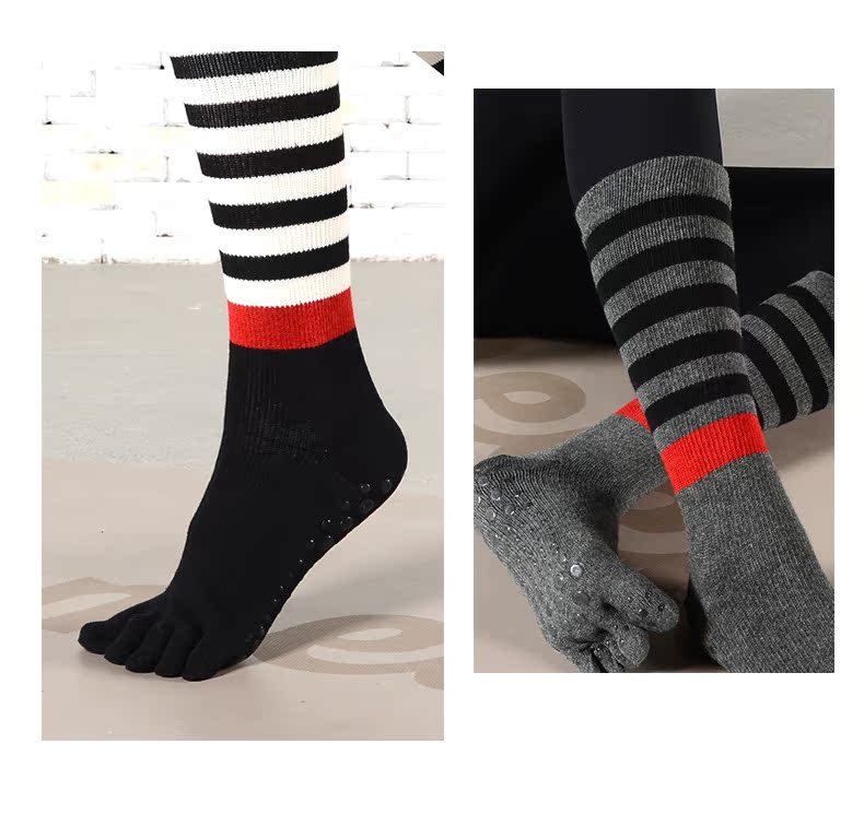 Красивый взгляд на длинные носки для йоги цилиндров, пять пальцев, не -скользящие планы, чтобы увеличить профессионала средней трубки, без возврата, без изменений потери позиции