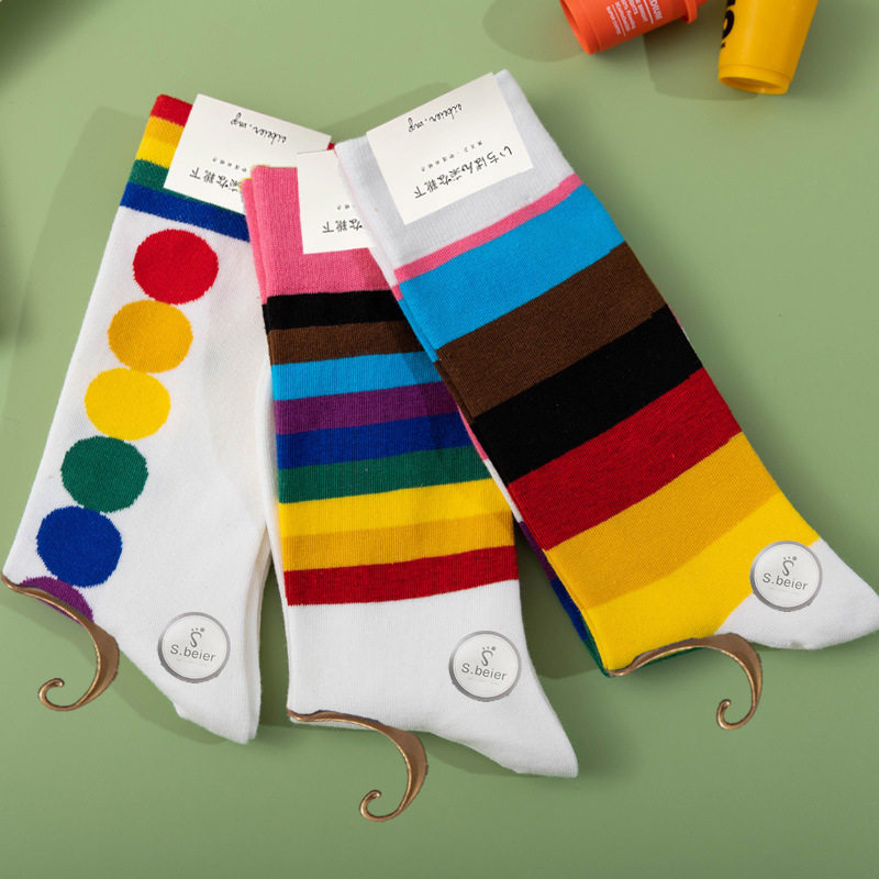 Модные радужные гольфы, носки подходит для мужчин и женщин, средней длины