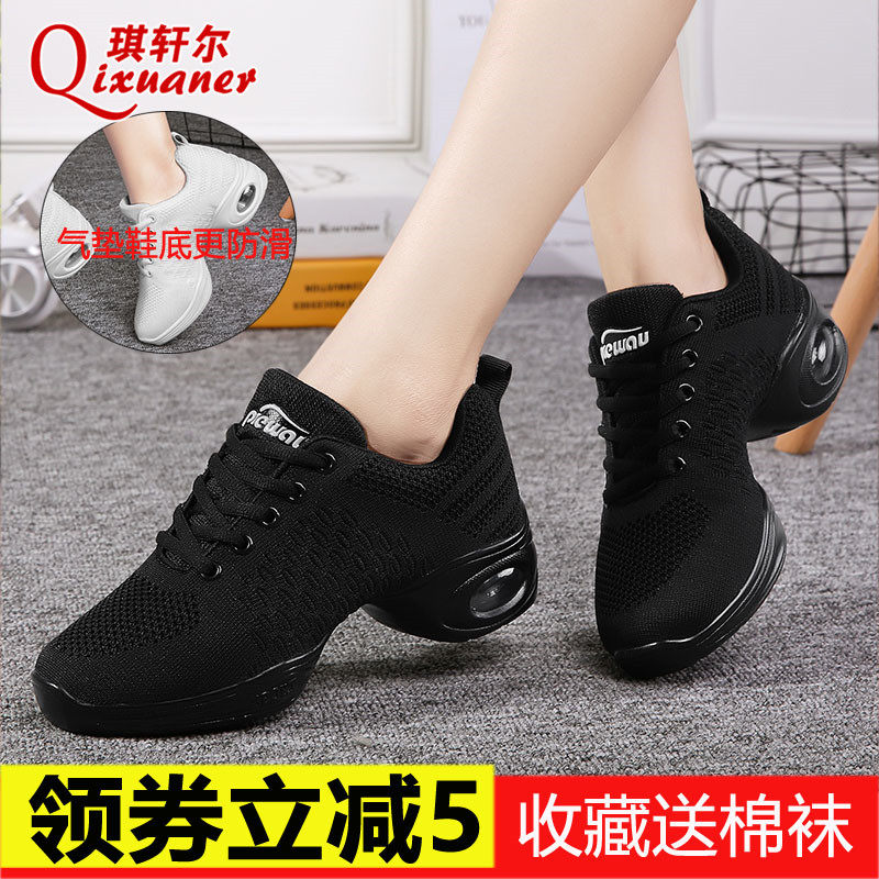 Обувь для квадратных танцев для женщин, новинка 2023 года, обувь для бальных танцев, на среднем каблуке, с сеткой, дышащая тканевая обувь на мягкой подошве, обувь для джазовых танцев для взрослых
