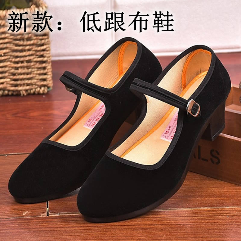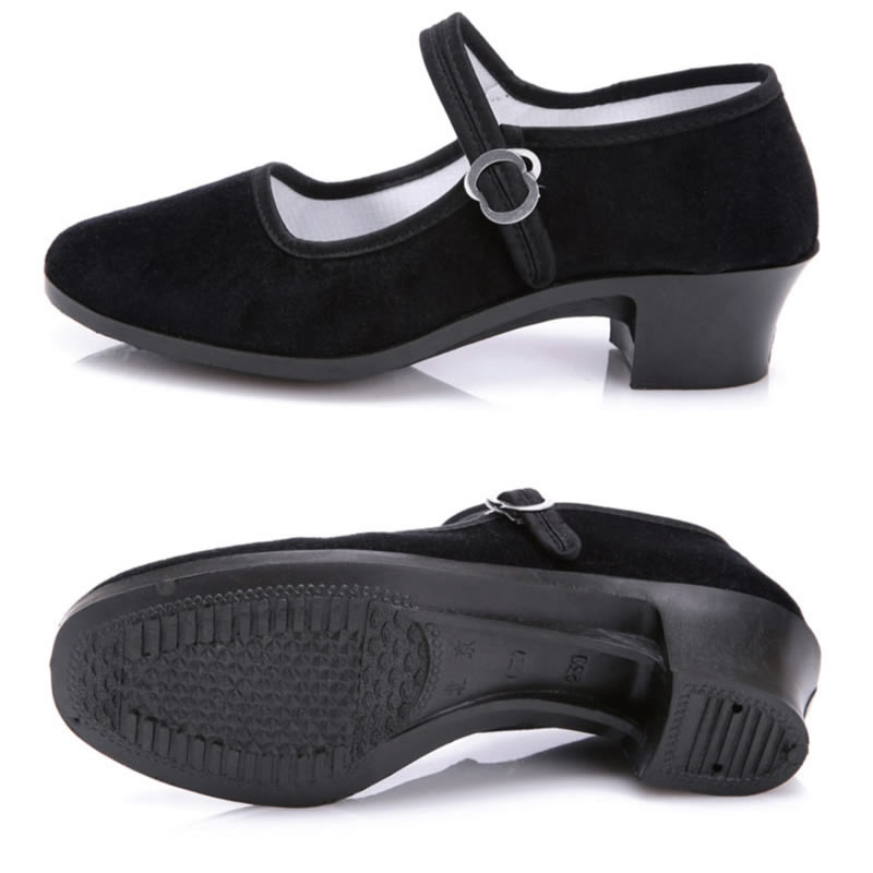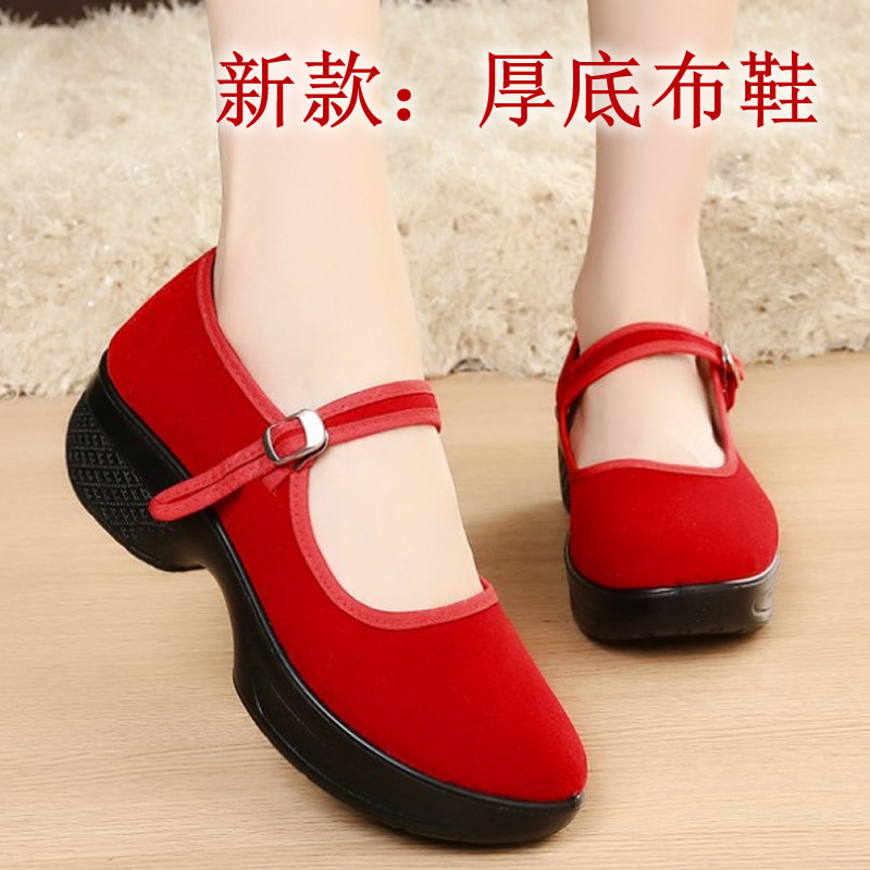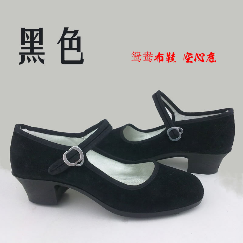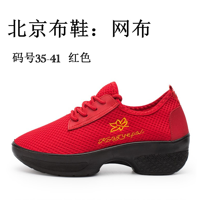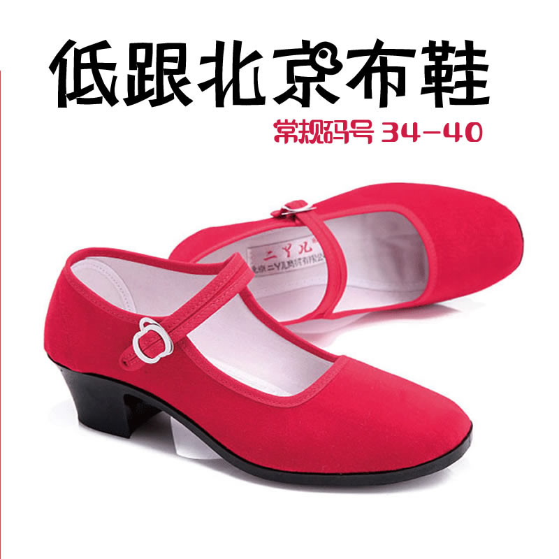 [舞蹈鞋绒布鞋民舞鞋练功鞋绒跟鞋红舞鞋民族舞蹈鞋秧歌平绒鞋]
