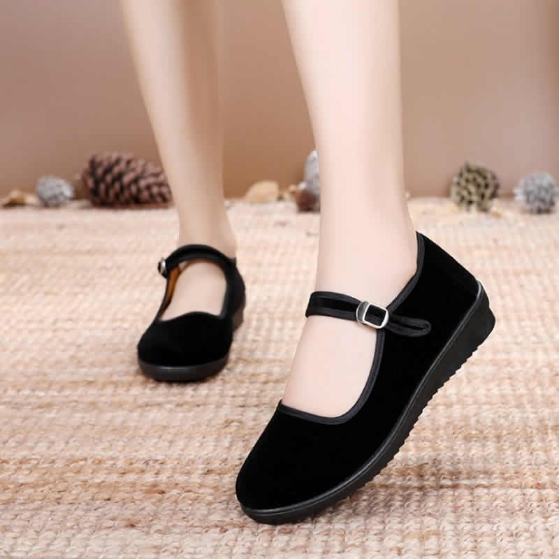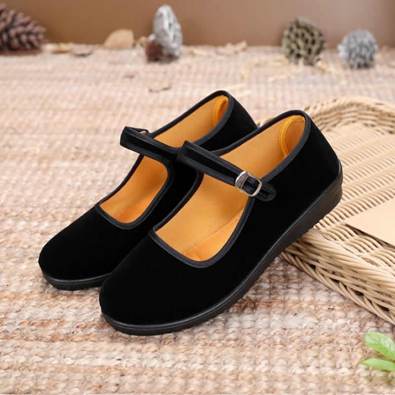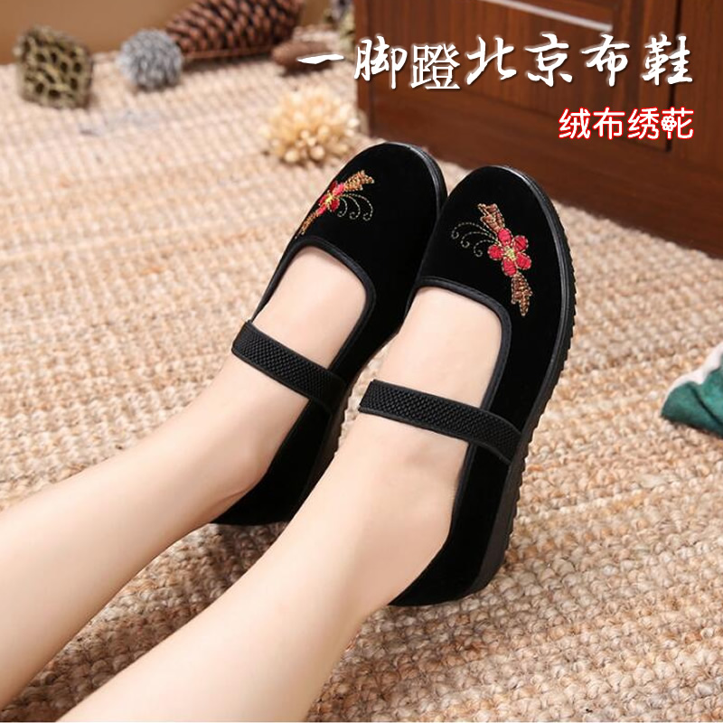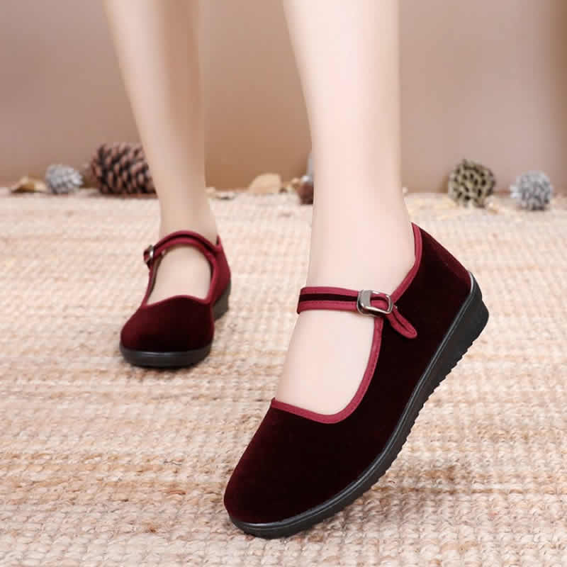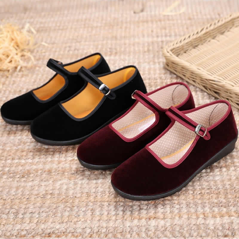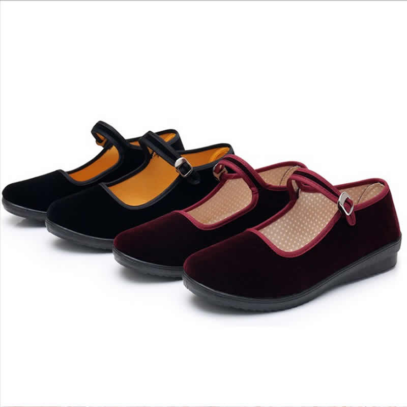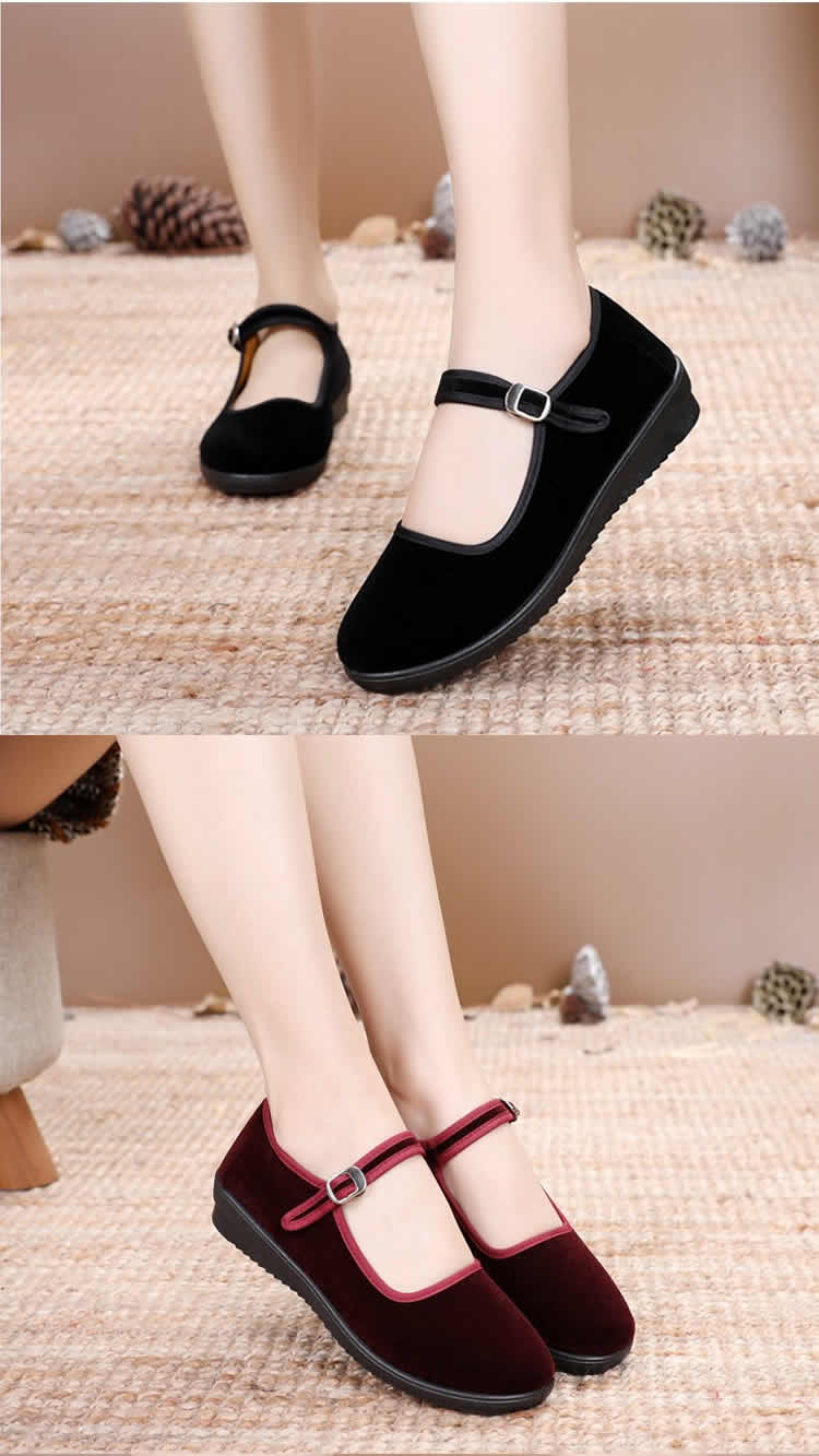 [舞蹈鞋绒布鞋民舞鞋练功鞋绒跟鞋红舞鞋民族舞蹈鞋秧歌平绒鞋]