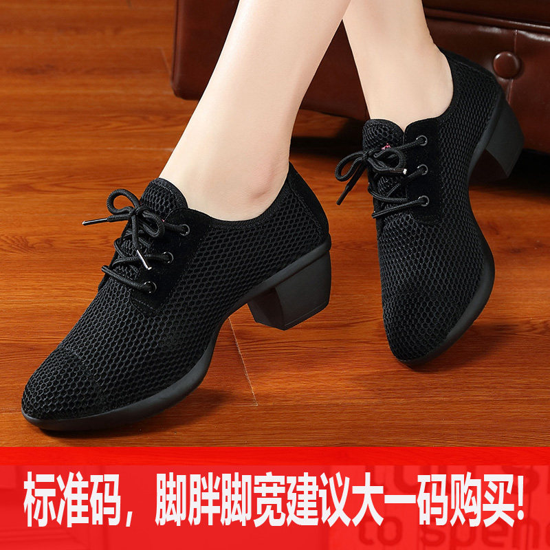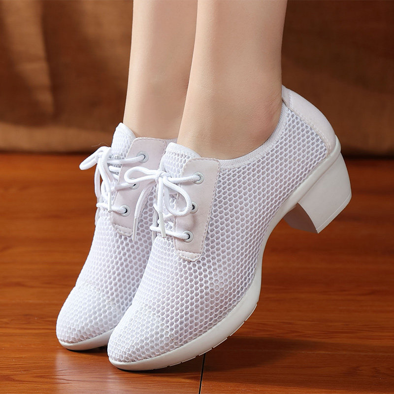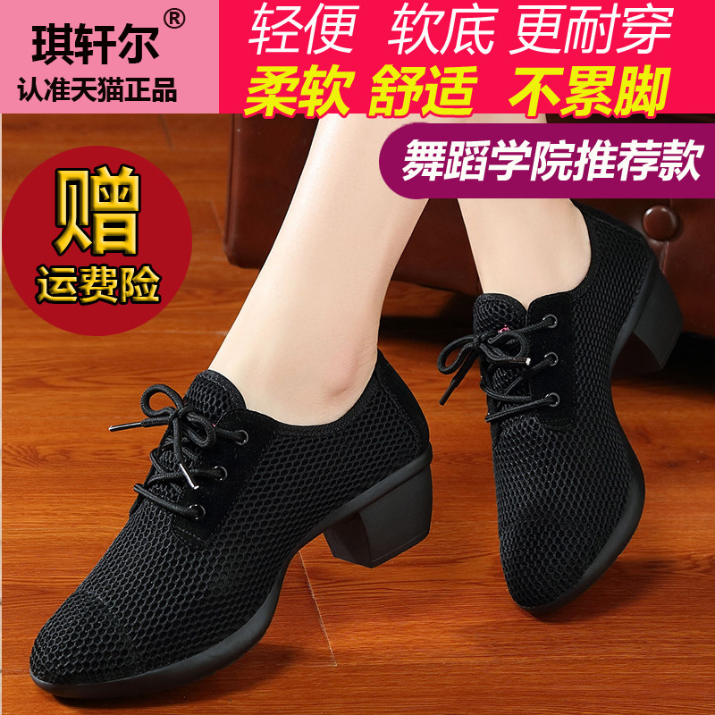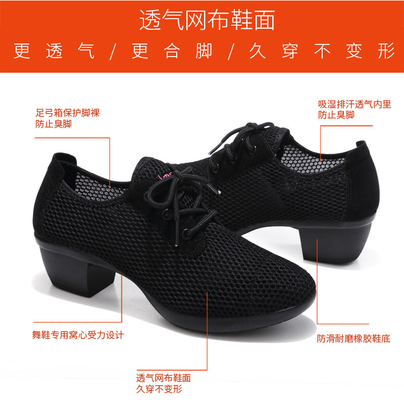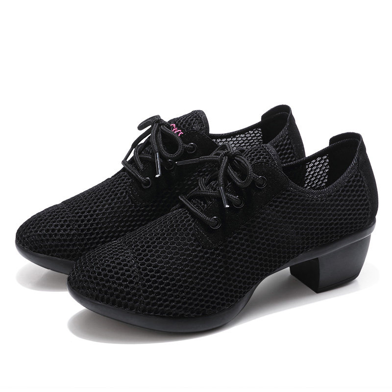 琪轩尔 Женские туфли для квадратных танцев, мягкая подошва, средний каблук, танцевальная обувь для верхней одежды, модные сетчатые дышащие танцевальные кроссовки.