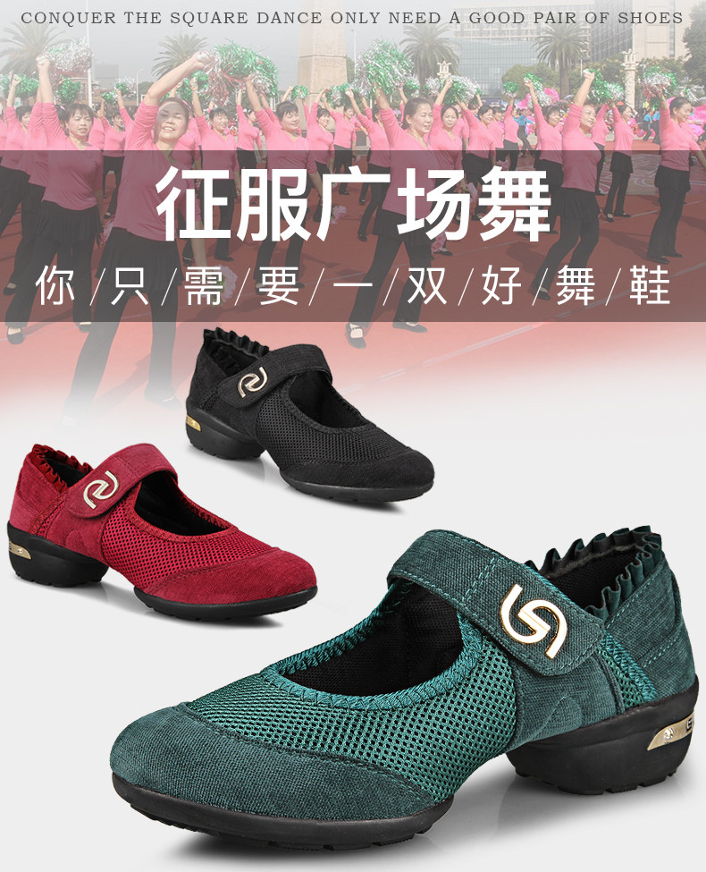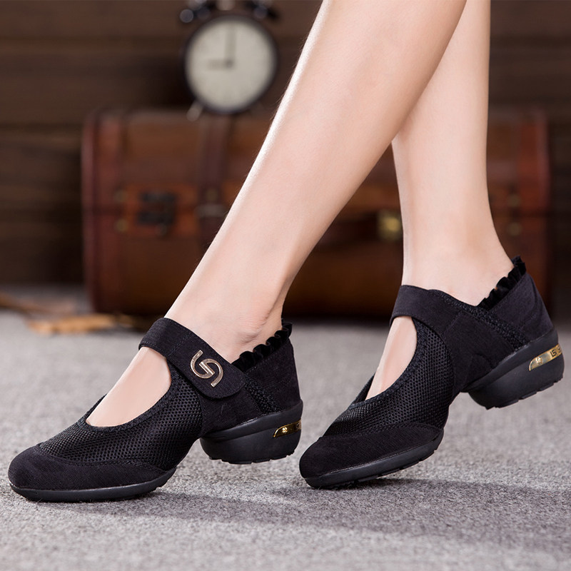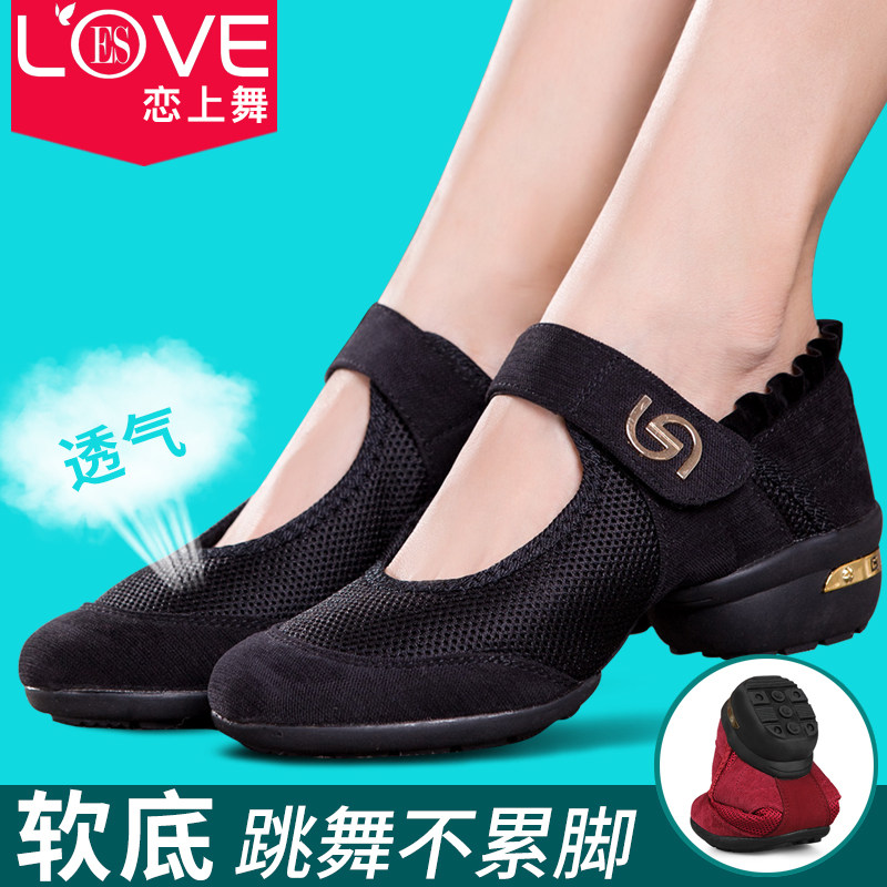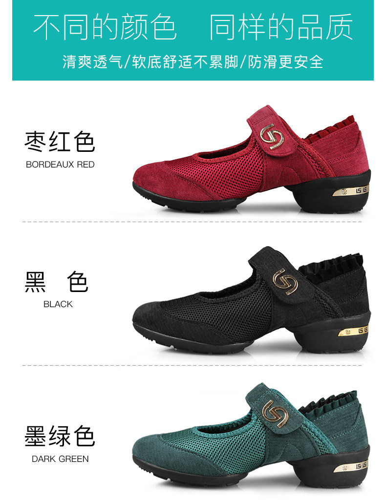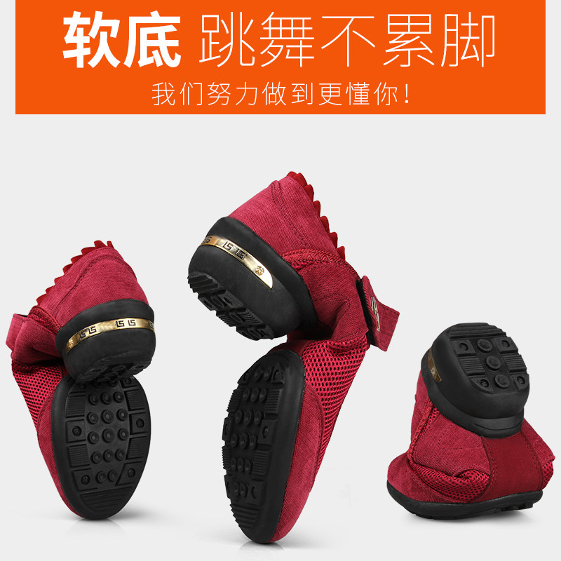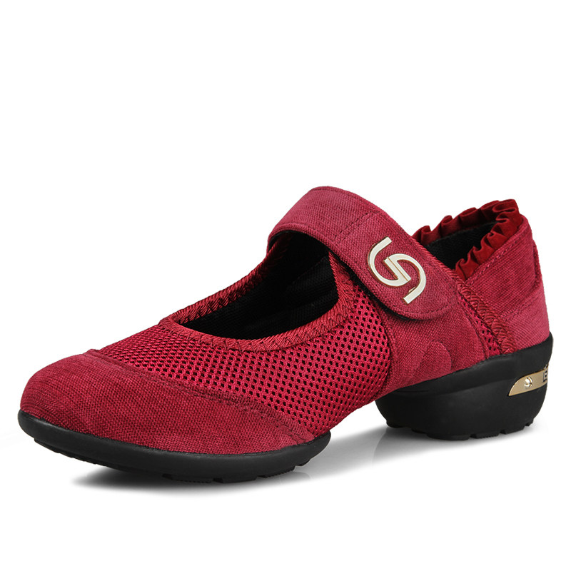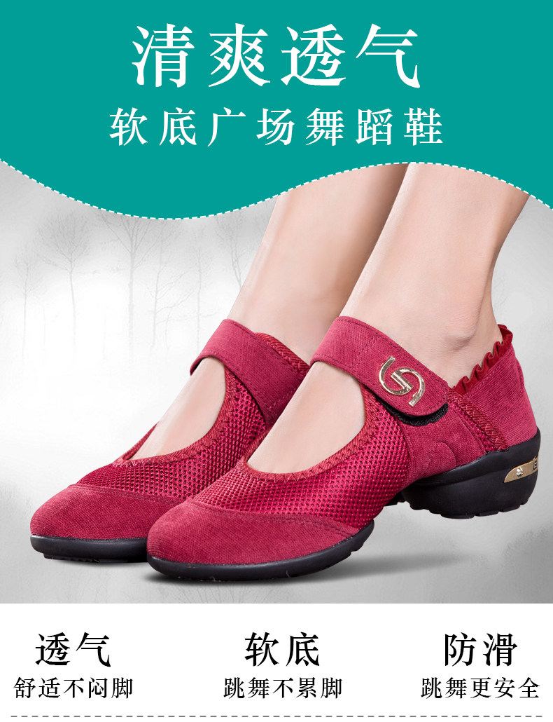 Танцевальная обувь для женщин среднего и пожилого возраста, летние дышащие туфли для кадриль на среднем каблуке, красная сетчатая обувь на мягкой подошве для мам в стиле джаз.