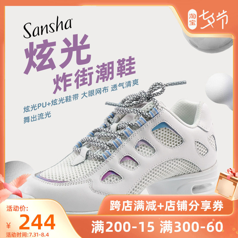 Sansha Sansha современные танцевальные туфли, красочные светоотражающие туфли из полиуретана с дышащей сеткой, квадратные танцевальные туфли, мягкие танцевальные туфли