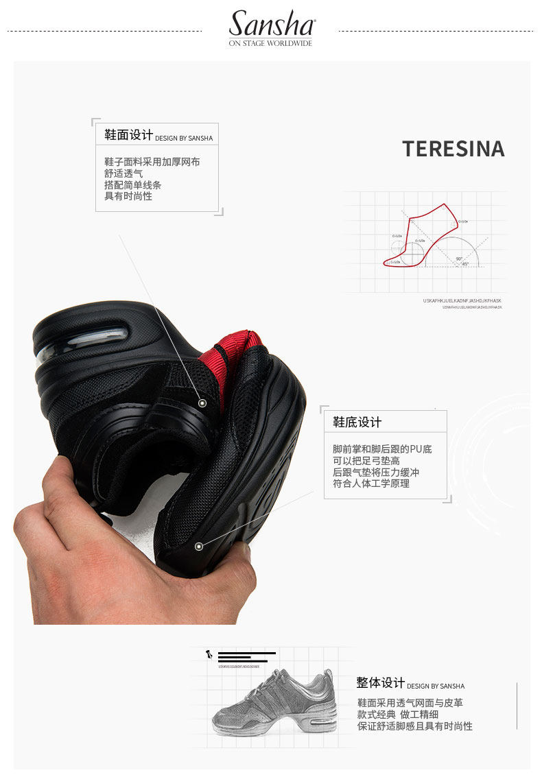 Sansha/三沙 Летняя спортивная обувь для кадриль, сетчатая мужская и женская обувь для танцев с дышащей воздушной подушкой и низким берцем H22M
