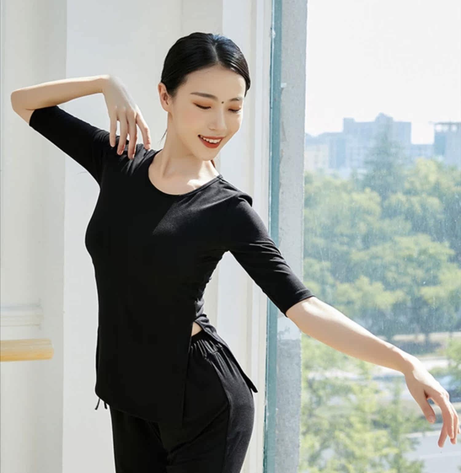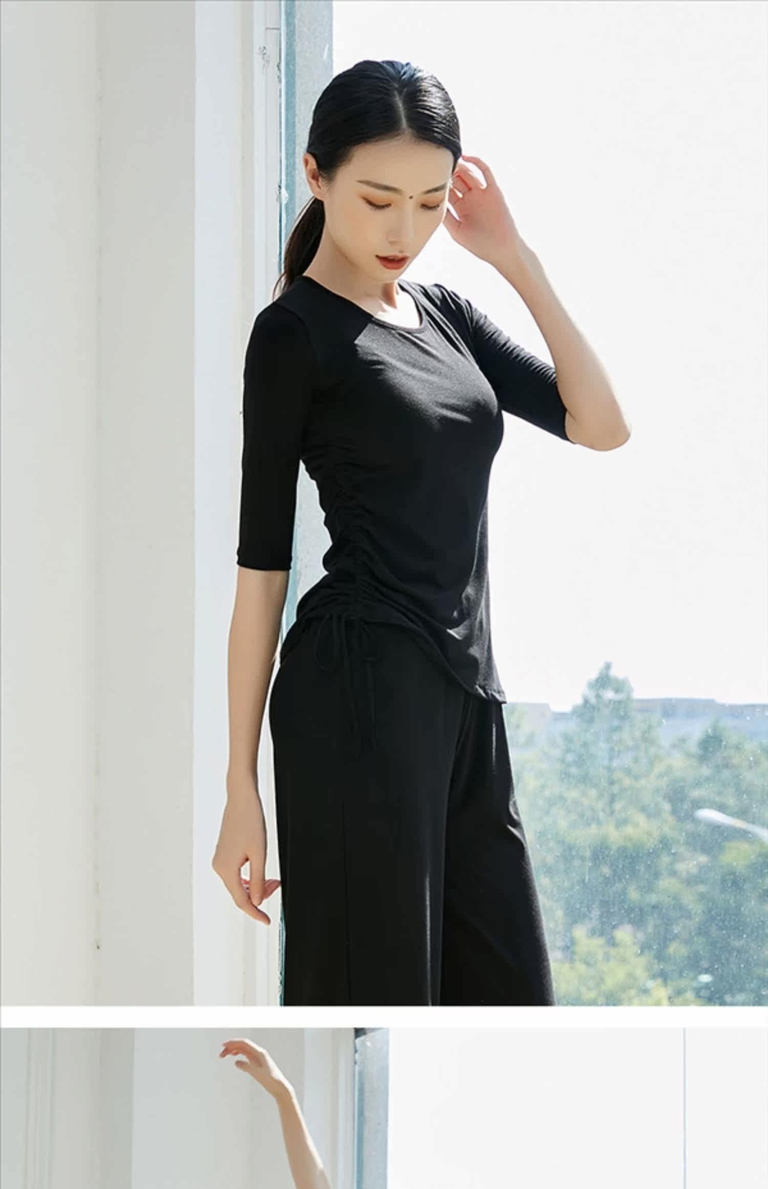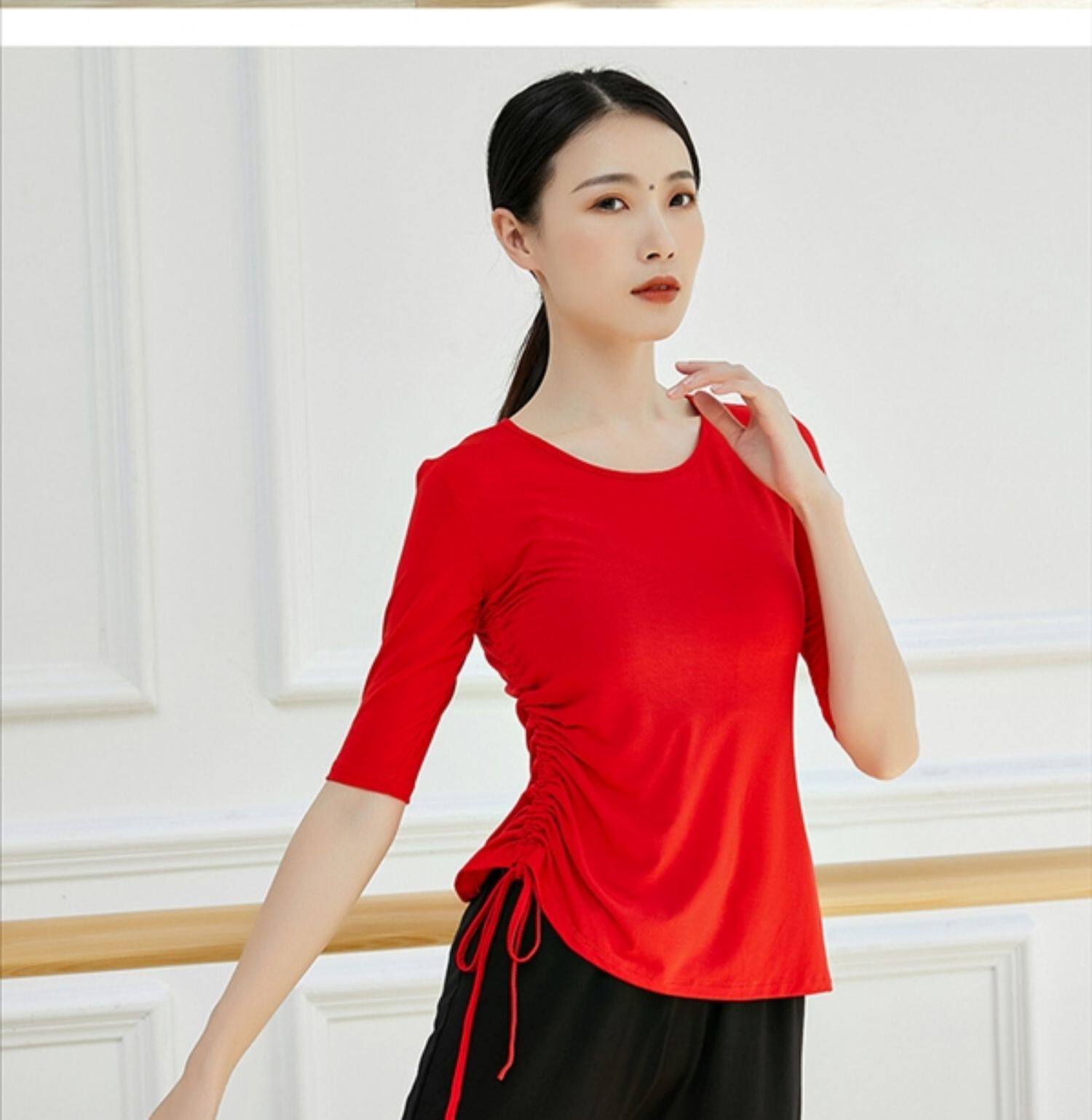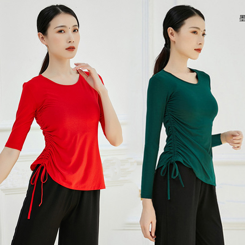 Спортивная одежда, современный классический танцующий лонгслив для тренировок, свободный крой, на шнурках