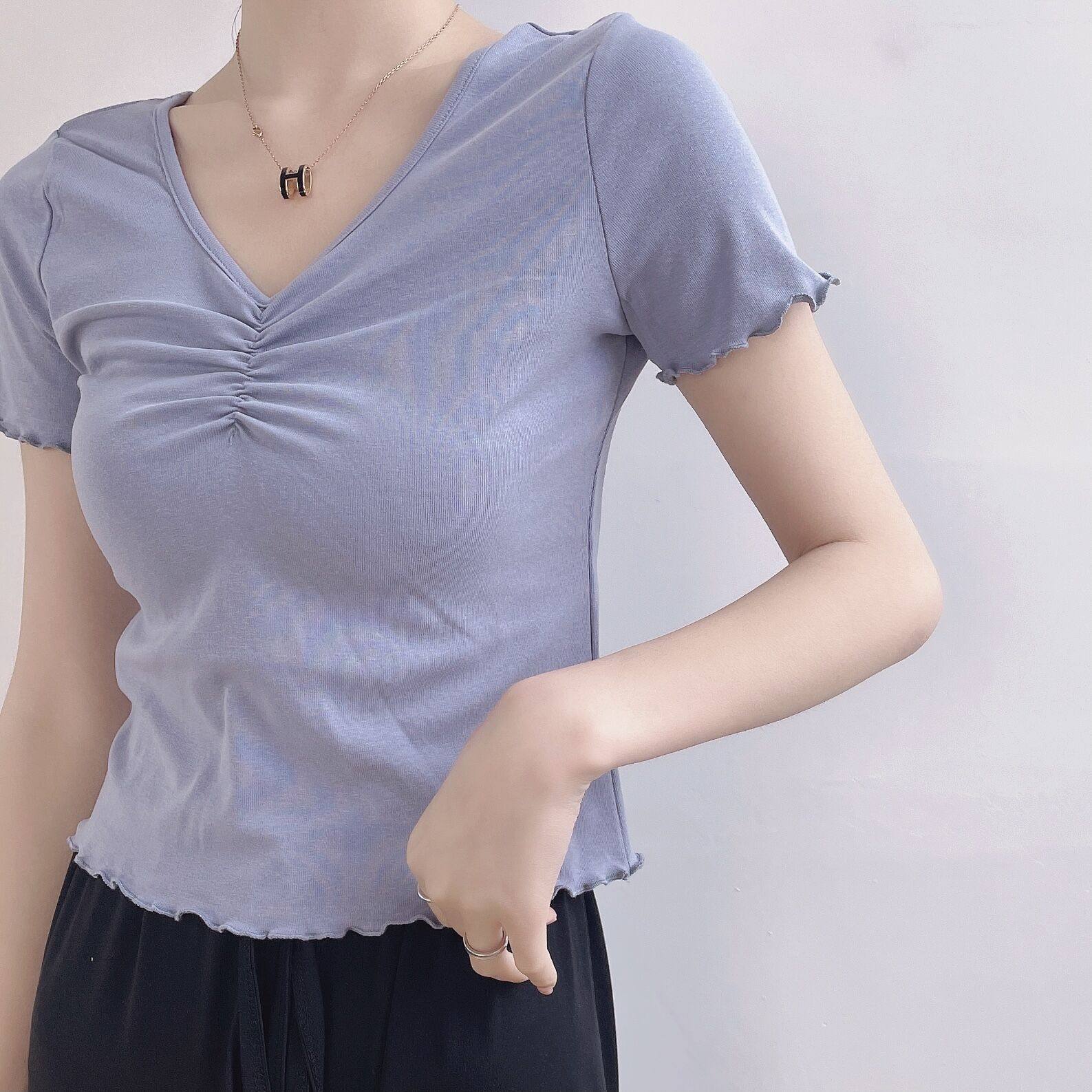 Спортивная одежда, хлопковая приталенная футболка с коротким рукавом для тренировок, V-образный вырез