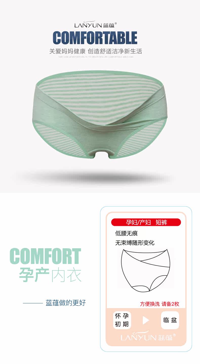 蓝蕴 Трусы для беременных, милые штаны для молодой матери с поддержкой живота