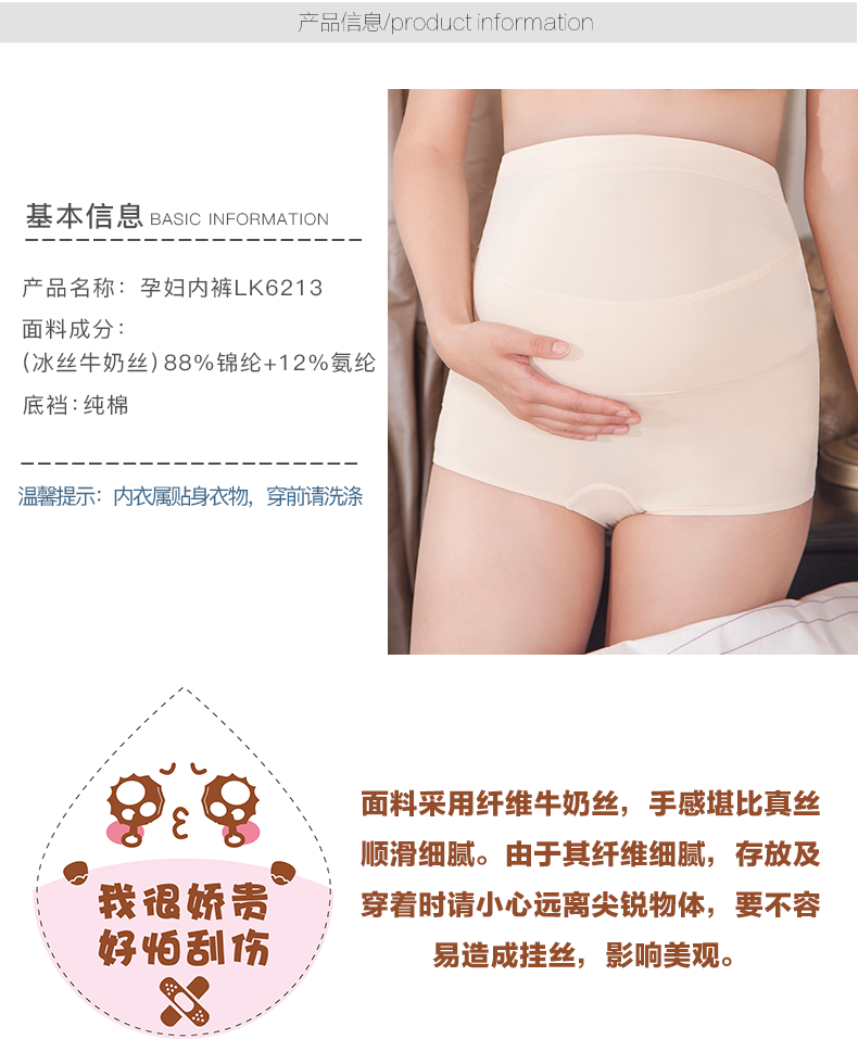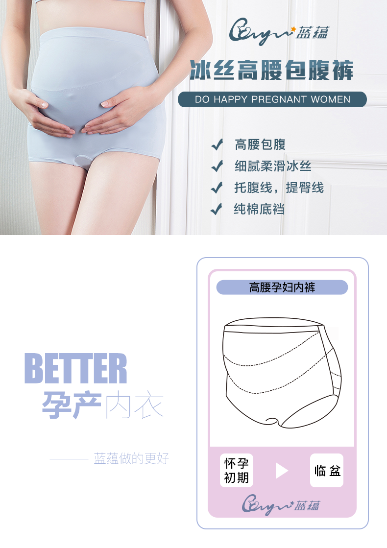蓝蕴 Шелковые трусы для беременных, тонкое дышащее хлопковое белье для коррекции формы бедер, штаны, высокая талия