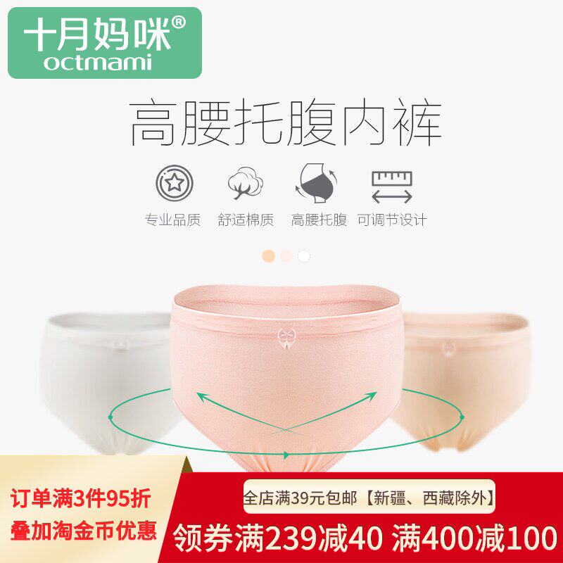 十月妈咪 Трусы с поддержкой живота, хлопковые дышащие штаны, нижнее белье для беременных, комбинезон, большой размер, высокая талия