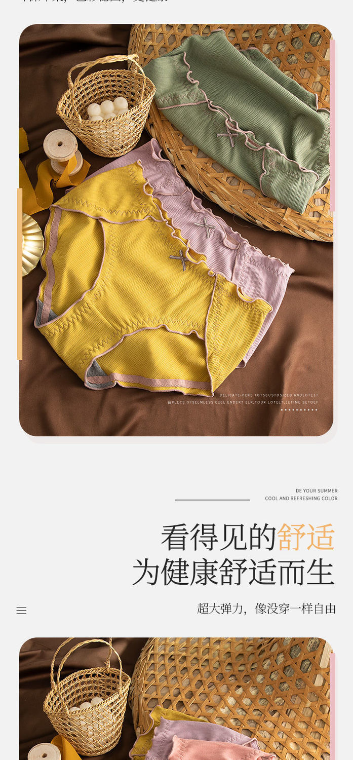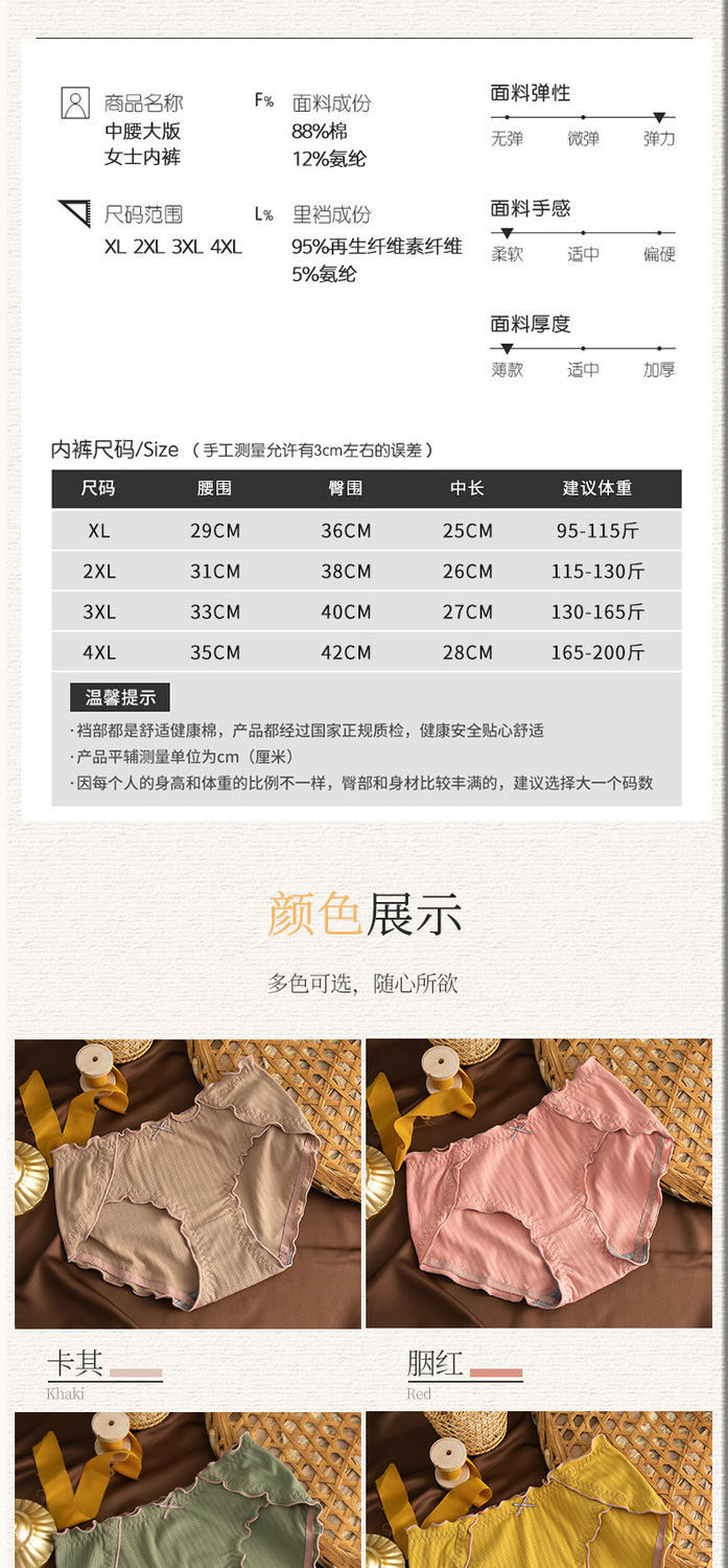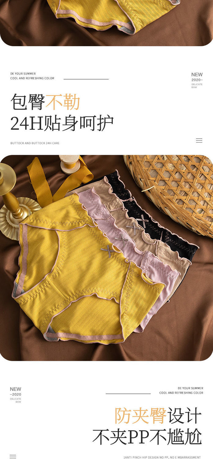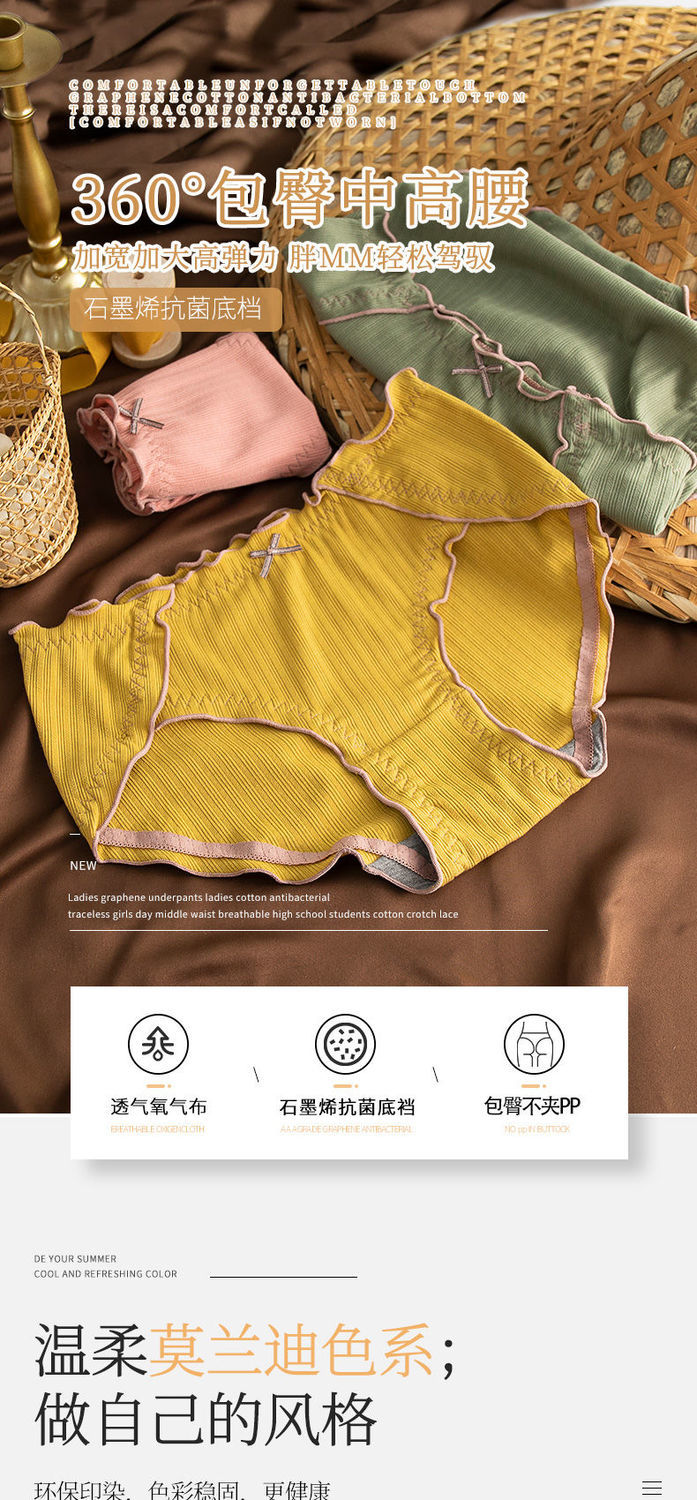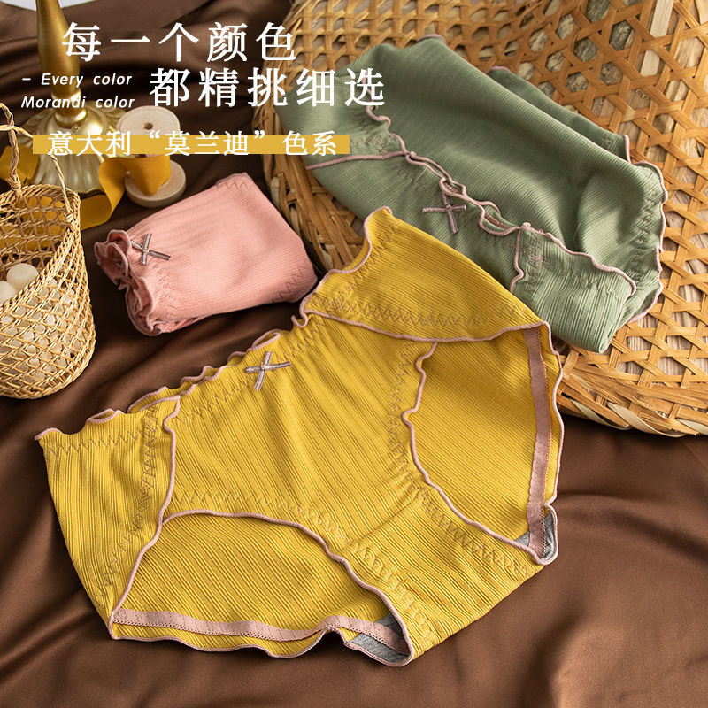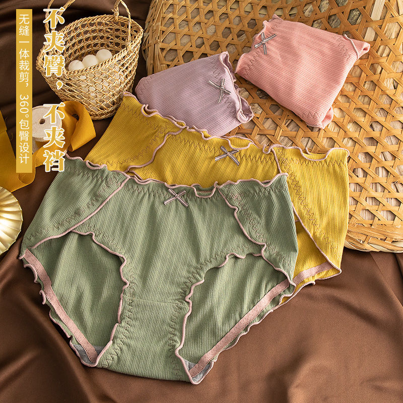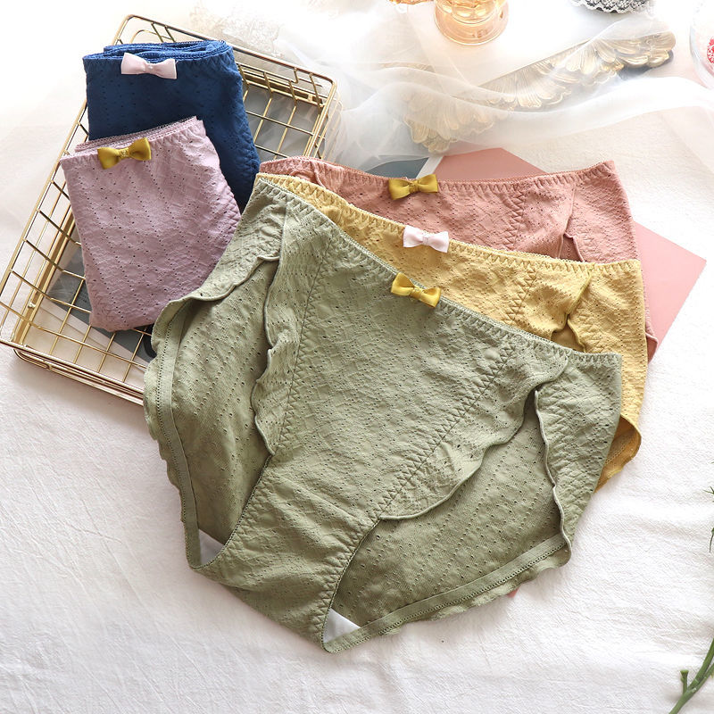 Нижнее белье, хлопковые сексуальные дышащие японские антибактериальные штаны, большой размер, средняя посадка