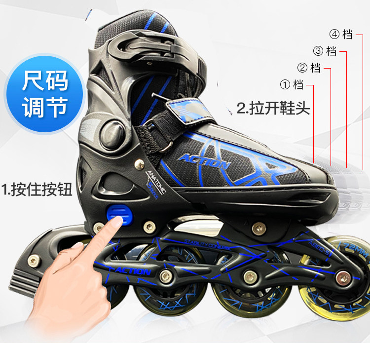 | Цвет: | Черно -синий колесный скейт+сумка, Черные и красные роликовые коньки+сумка, Черно -пурпурное колесное катание+сумка |