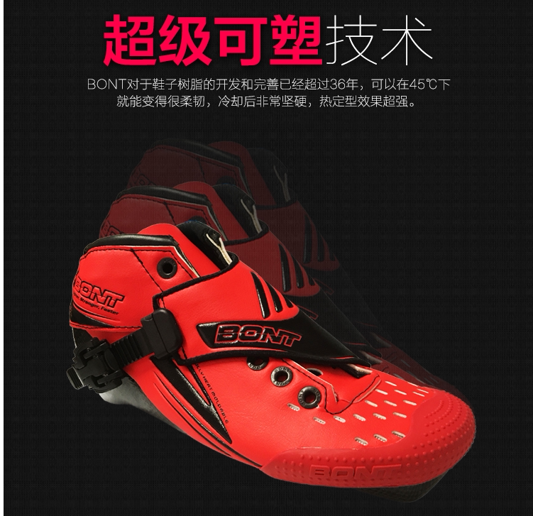 Ног обуви использует полную прозрачную конструкцию воздуха и использует быструю термопластичную технологию Bont.