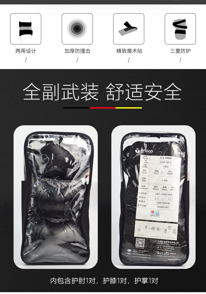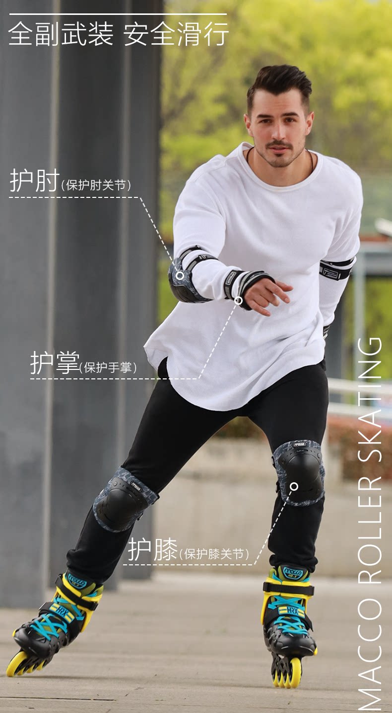 米高 Защитное снаряжение для уличного катания для взрослых, коньки, скейтборд, детские наколенники подходит для мужчин и женщин, велосипед, комплект, полный комплект, учит балансу