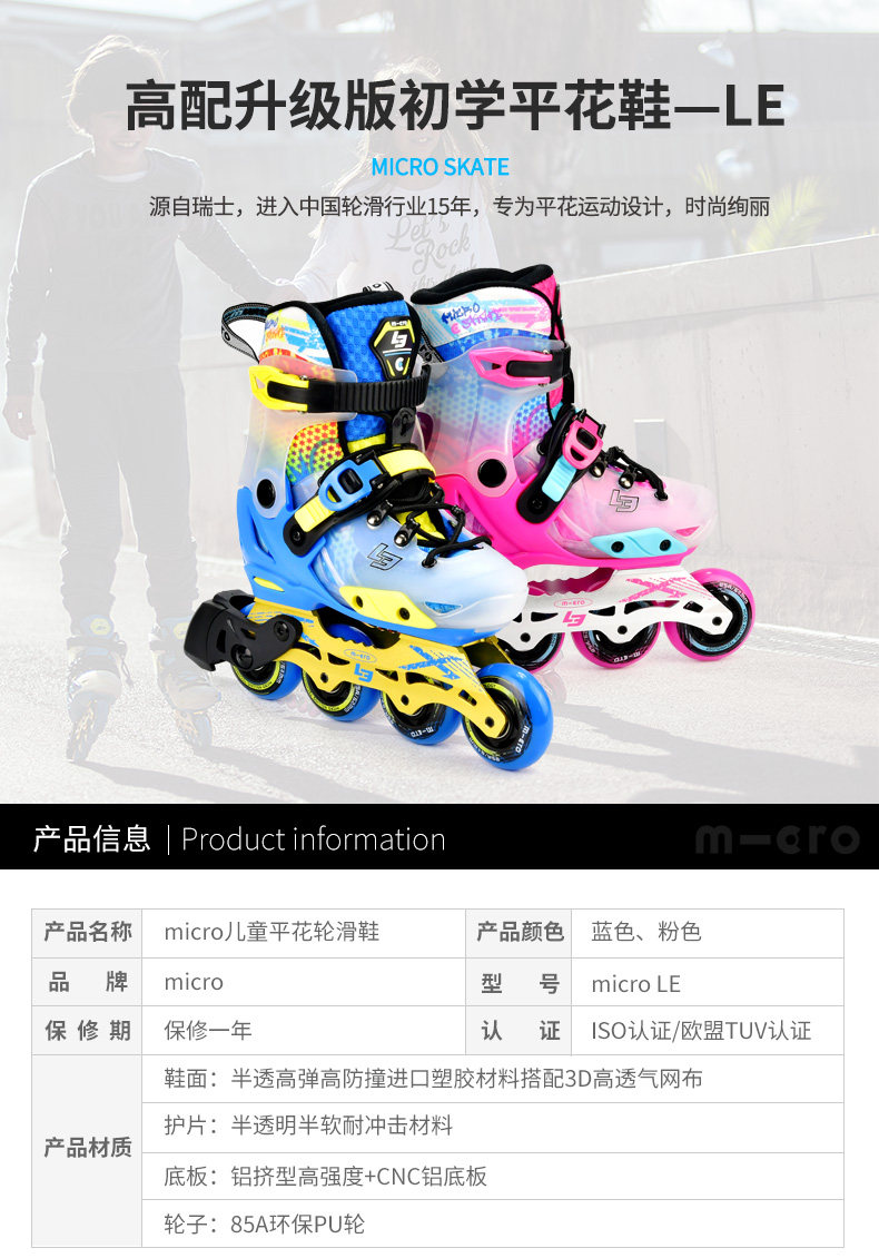 Micro, детские коньки, регулируемый комплект для начинающих подходит для мужчин и женщин, Швейцария, полный комплект