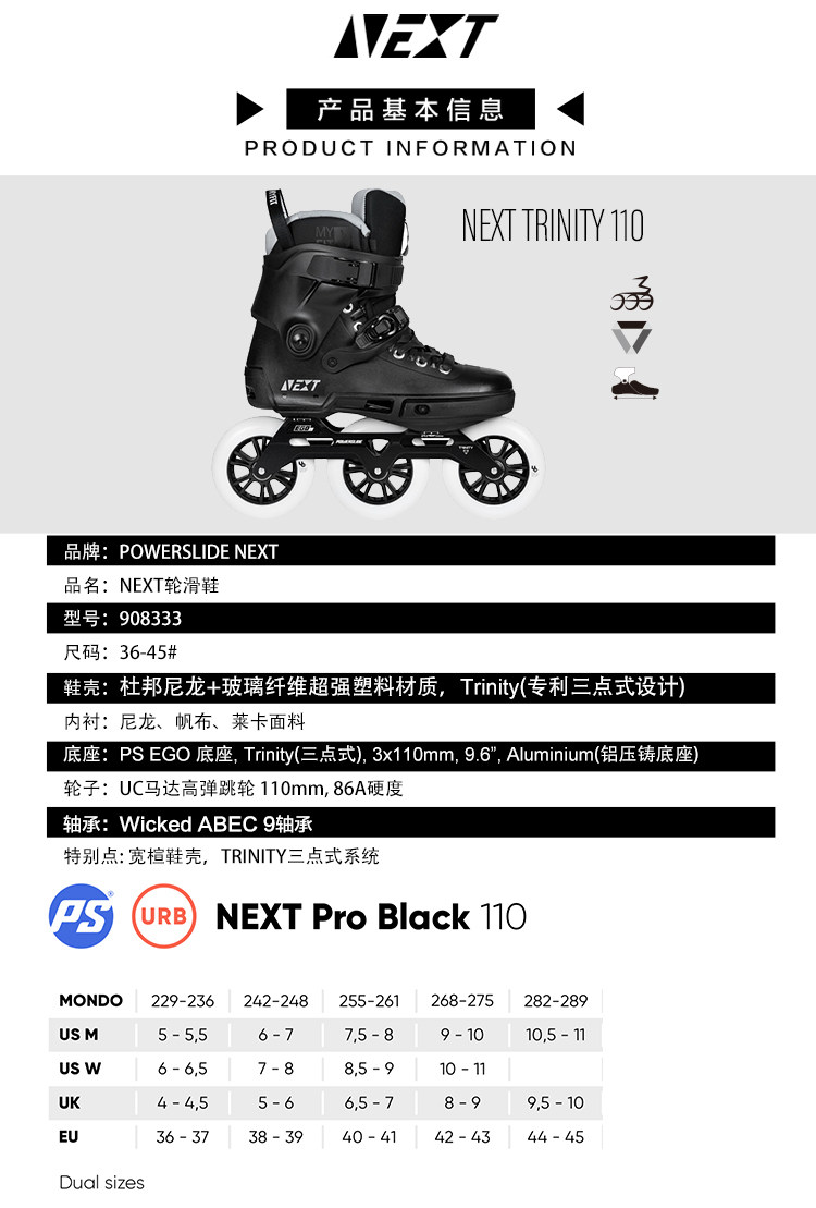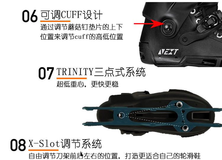 Next, трехколесные профессиональные роликовые коньки подходит для мужчин и женщин для уличного катания, 110mm