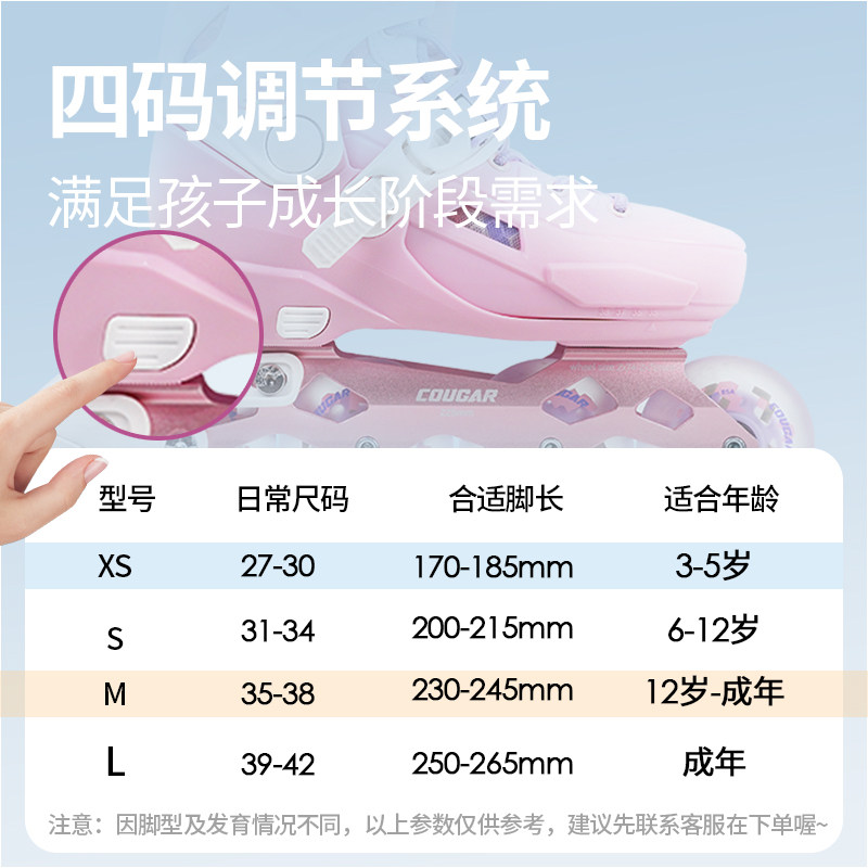 | Размер обуви: | XS-код (настройка 27-30), S код (настраиваемый 31-34), M-код (нарегулируемый 35-38), L код (настройка 39-42) |
