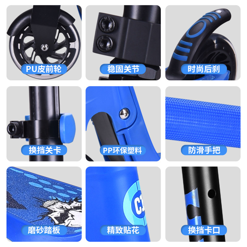 Детский мигающий самокат для начинающих с педалями, 4-5-6-7-8 лет