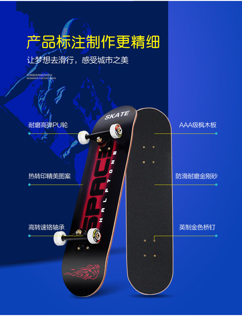 Детский профессиональный скейтборд на четырех колесах для начинающих с двумя изогнутыми концами для взрослых подходит для мужчин и женщин, шоссейный самокат, игрушечная машина
